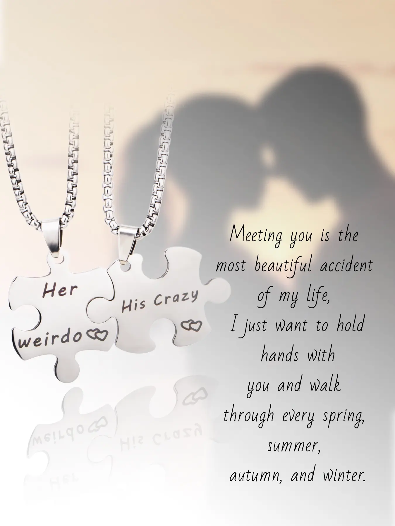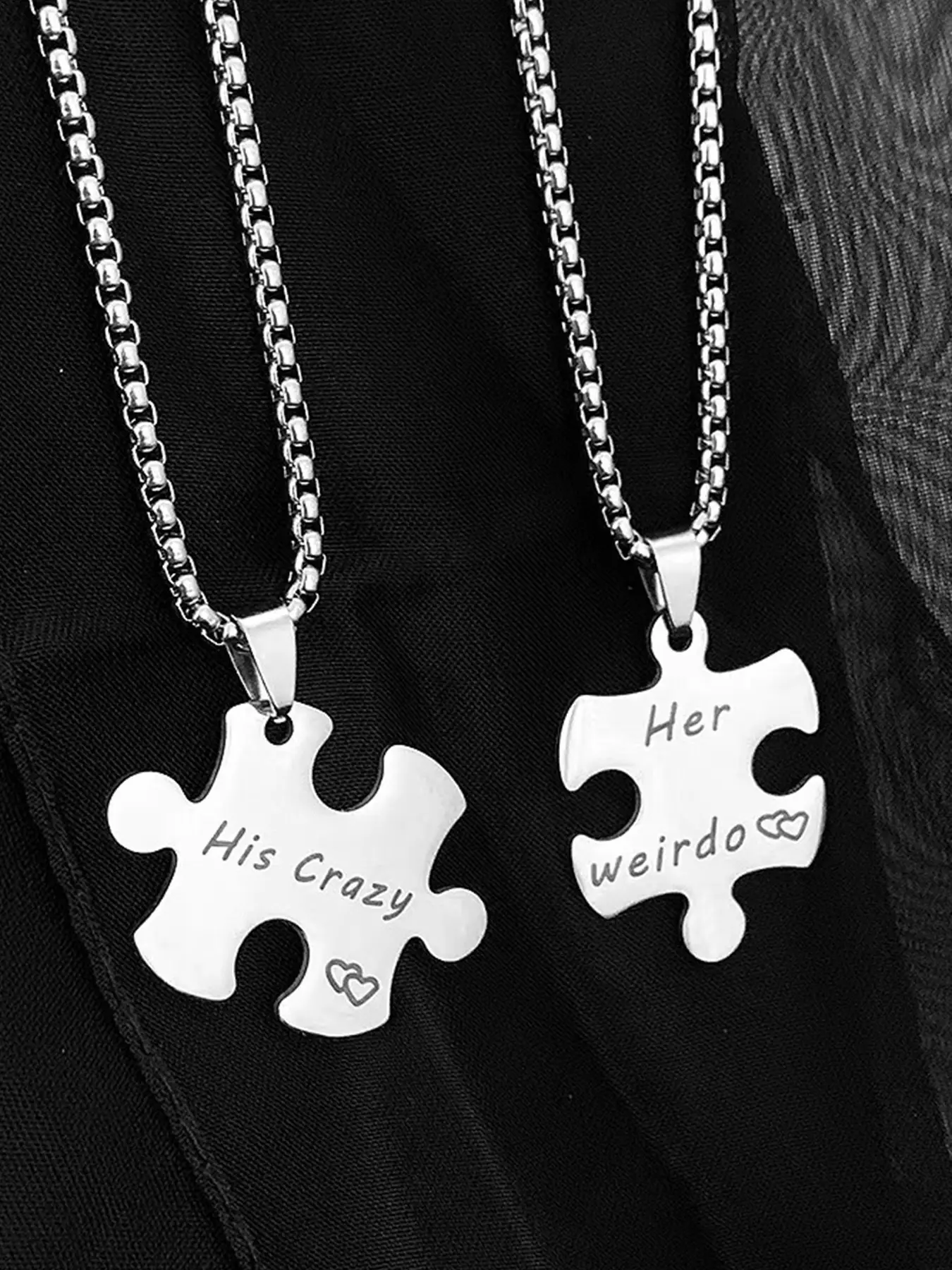 Silver, Stainless steel black puzzle couple necklace