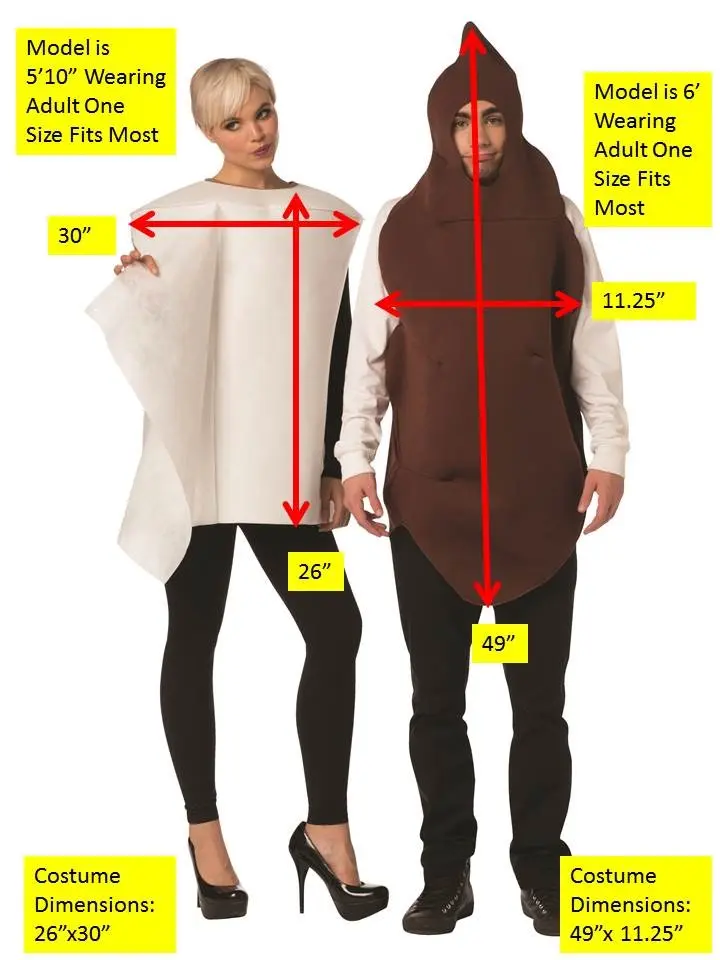 Real life Emojis! The perfect couples costume! What is the more perfect than matching toilet paper and poop? Perfect Halloween costume for your next party or event! Couples costume, packed together. Unisex and interchangeable. One Size fits most adults women up to size 16 and men up to size XL.