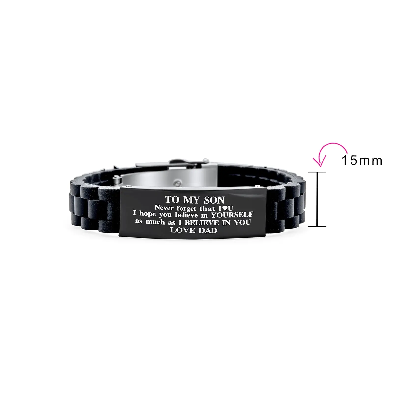 5. To My Son Inspirational ID Bracelet Stainless Steel Black Silicone Wristband