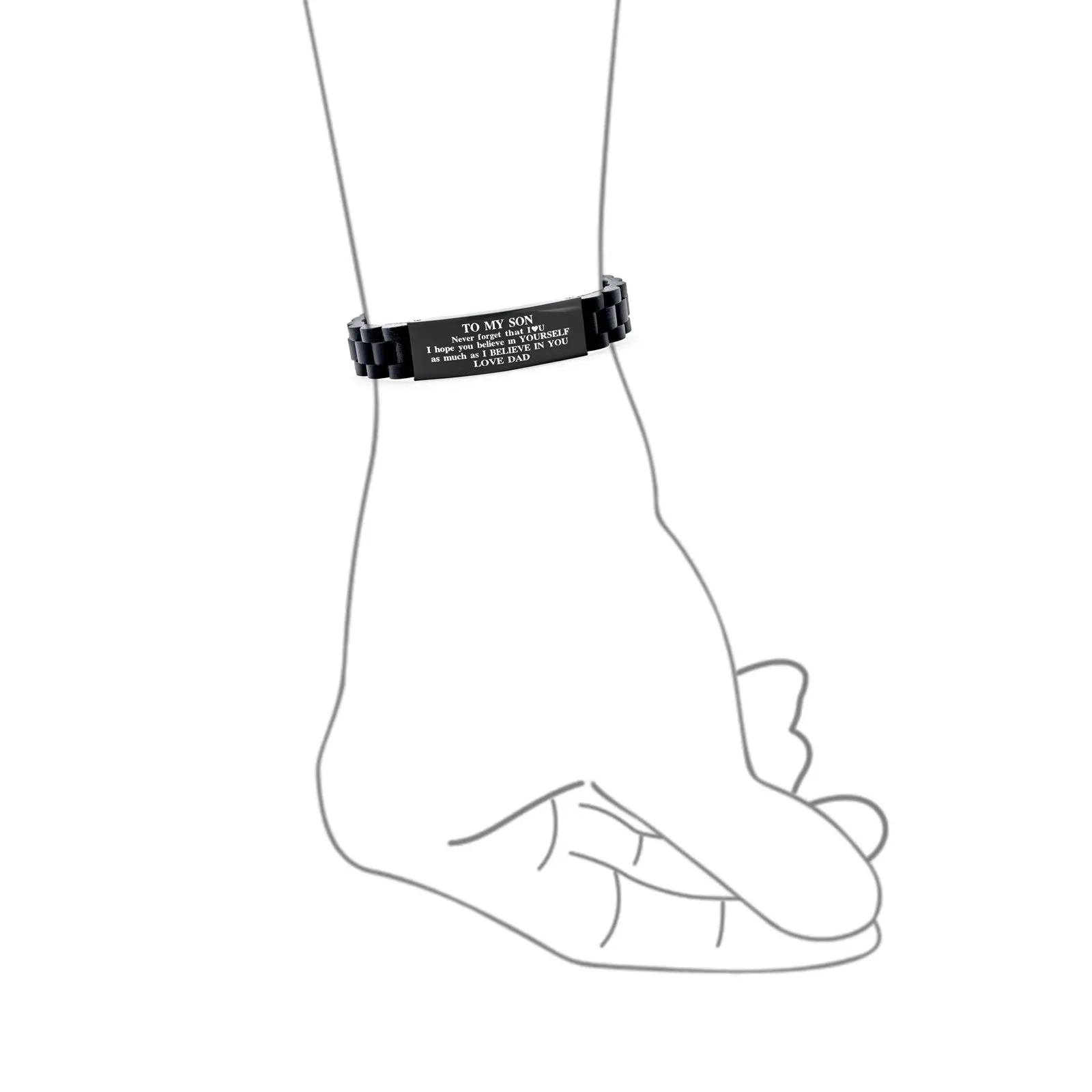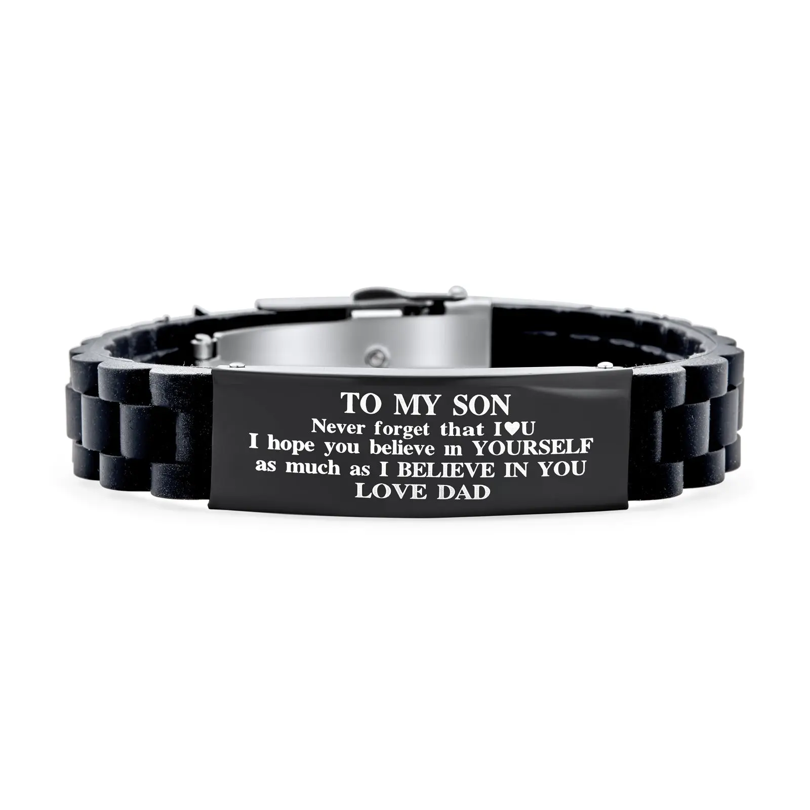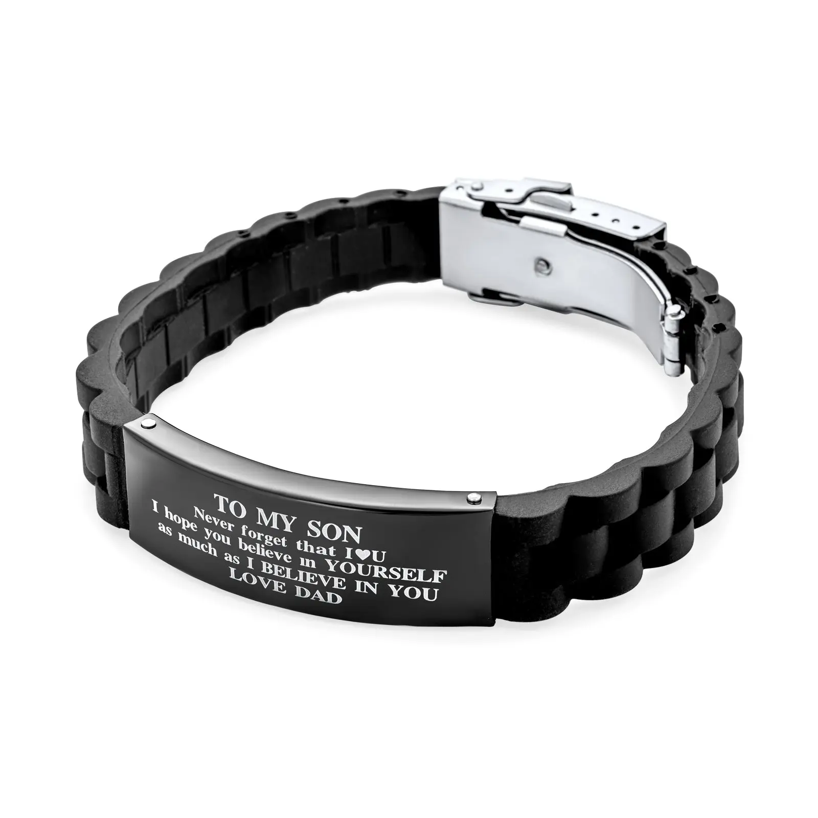 To My Son Inspirational ID Bracelet Stainless Steel Black Silicone Wristband