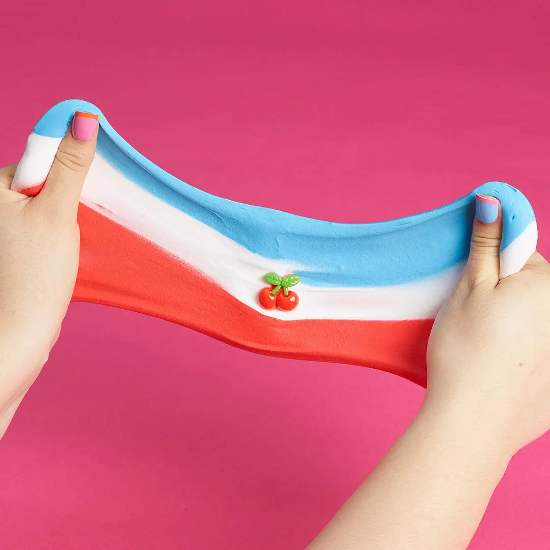 We choose positivity, hope, love, faith and courage, which is why we created a fresh collection based on living anew and the beauty that lies ahead. This slime is red, white, and blue for a reason - it represents courage, something that is innately part of our country. It's a rich yet soft butter slime, scented like cherry (and topped with one too). Let's have the courage to move forward together and spread joy to the world - at least through slime!