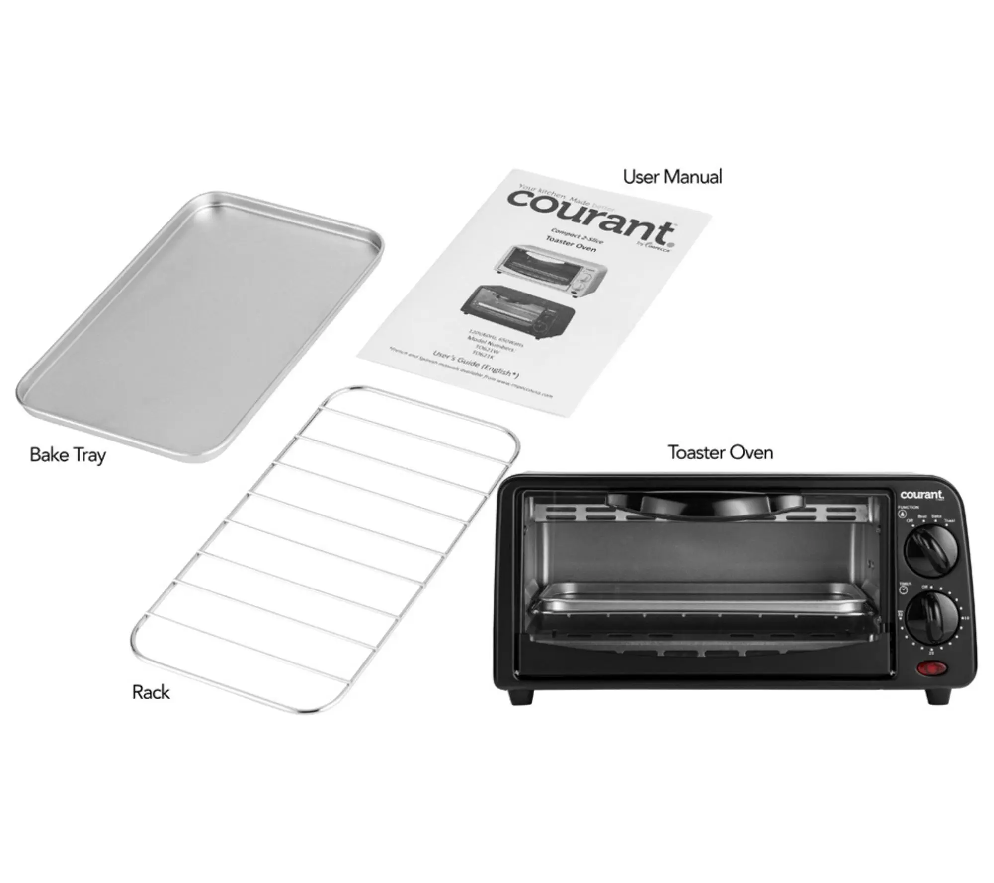 ·Includes toaster-oven, bake tray, oven rack, and user's guide