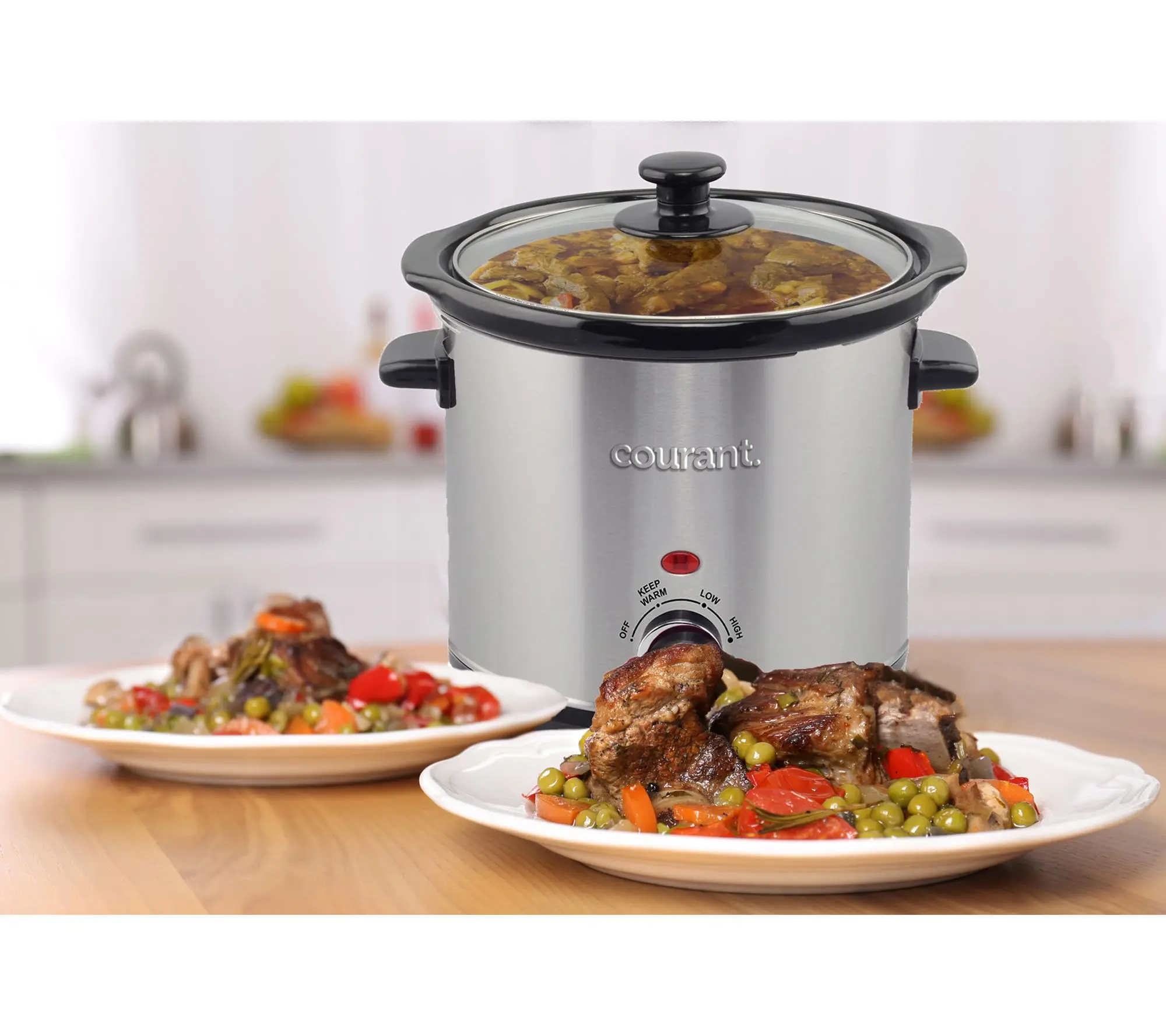 Enjoy hearty family dinners or prep meals ahead with this 3.2-quart slow cooker. Effortless slow cooking lets you create soups, stews, or chili, while adjustable heat settings make it a breeze to cook and keep food warm until you're ready to serve. The removable ceramic pot and glass lid simplify cleanup, so you can spend more time savoring and less scrubbing. From Courant.
