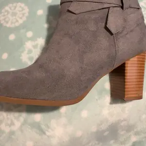 Feature: Women's ankle booties with chunky stacked heel, side strappy bowtie and zipper, faux suede, high top, fashion walking booties