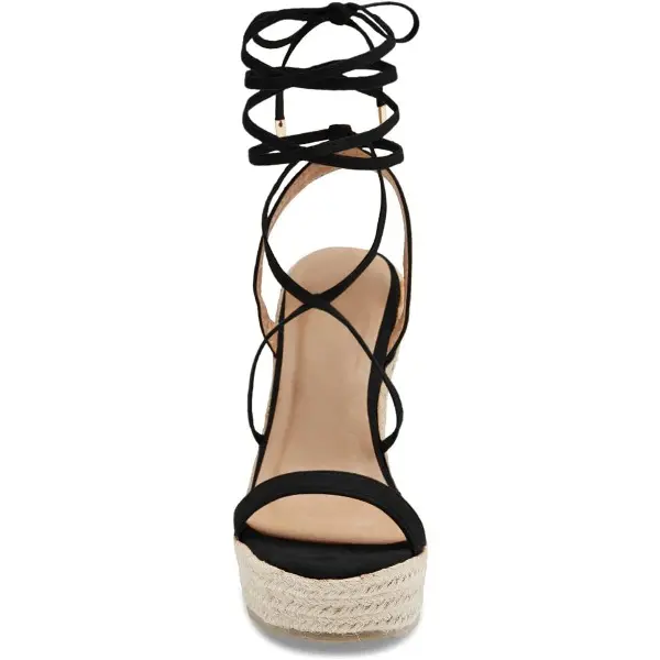 Features Lace up / Ankle Wrap / Faux Suede & Faux Leather/ Solid / Round Toe / Rubber Sole / Platform / Espadrille