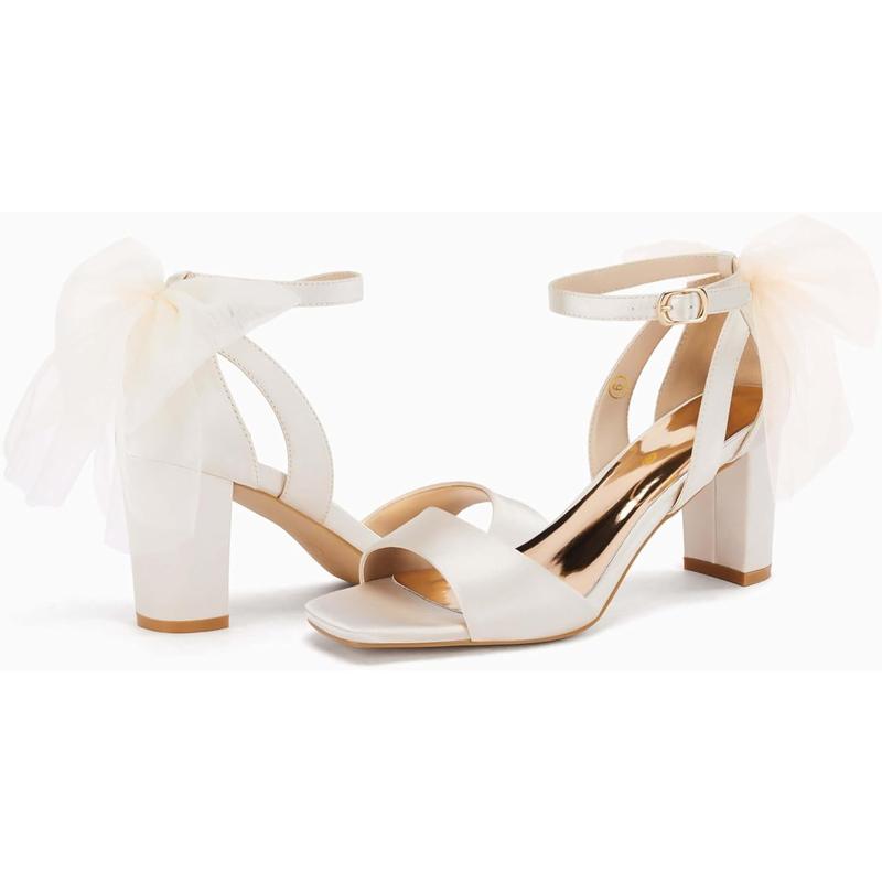 Coutgo Women's Bow Tie Heeled Sandals Chunky Heels One Strap Satin Ankle Buckle Dress Wedding ShoesCoutgo Women's Bow Tie Heeled Sandals Chunky Heels One Strap Satin Ankle Buckle Dress Wedding Shoes