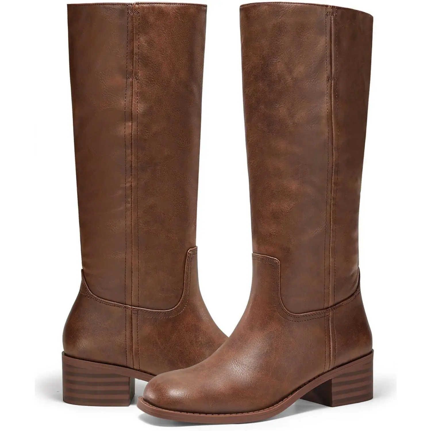 These knee-high boots feature a trendy square toe and a 1.57-inch chunky block heel. They add an effortlessly chic touch to any outfit, perfect for daily wear and outdoor adventures. The design ensures you look stylish while feeling comfortable.