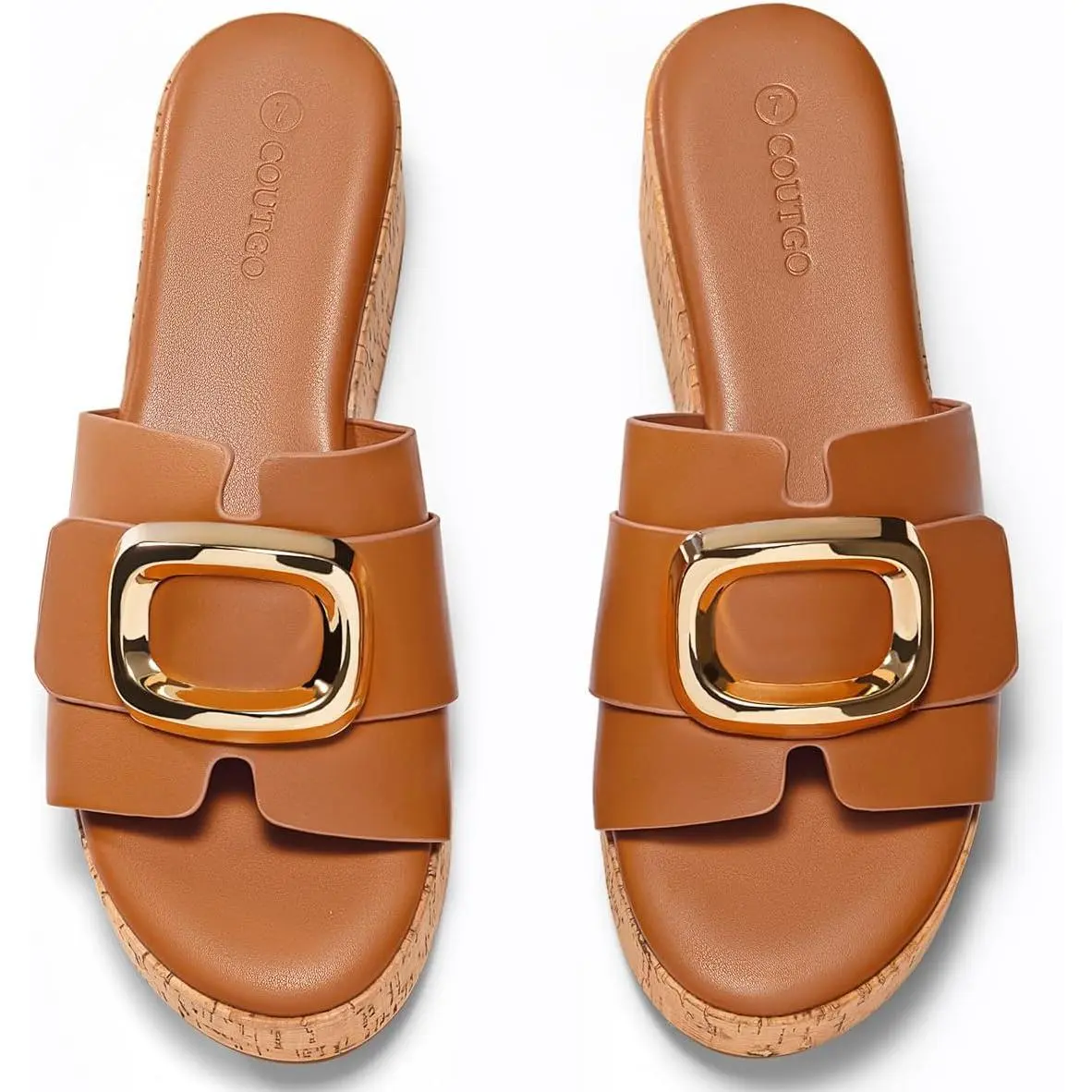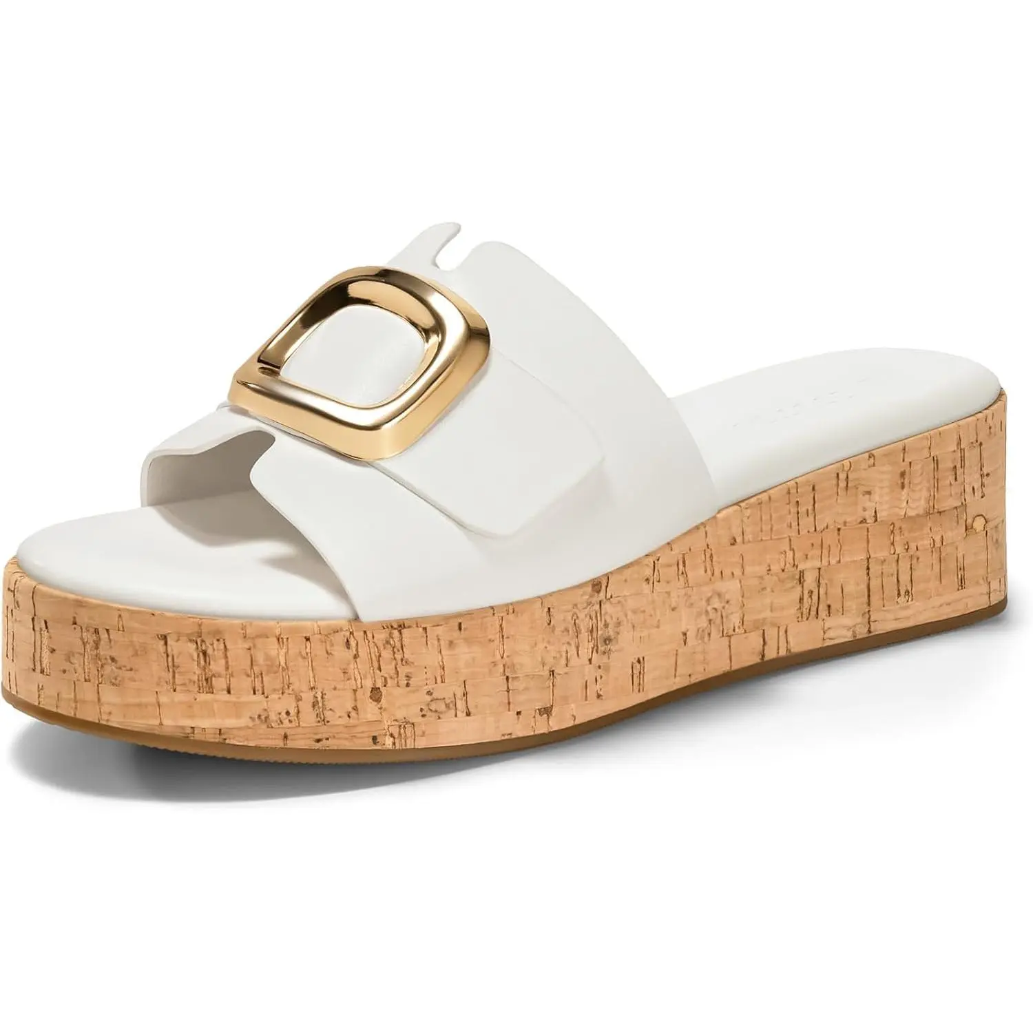 Platform slides sandals for women feature open toe, metal buckle, non-slip sole, and slip-on style, it's a good choice for summer.