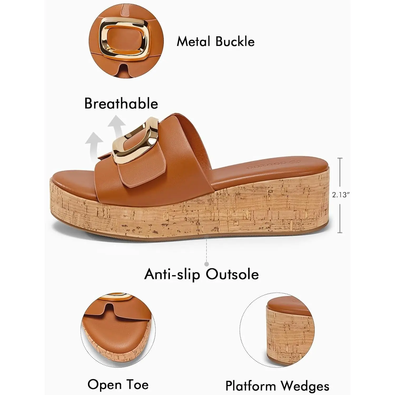 ·Platform: Approx 2.13-inch platform heel, women's slip on sandals offer a modest lift, enlongating your legs and making your feet comfort whole day