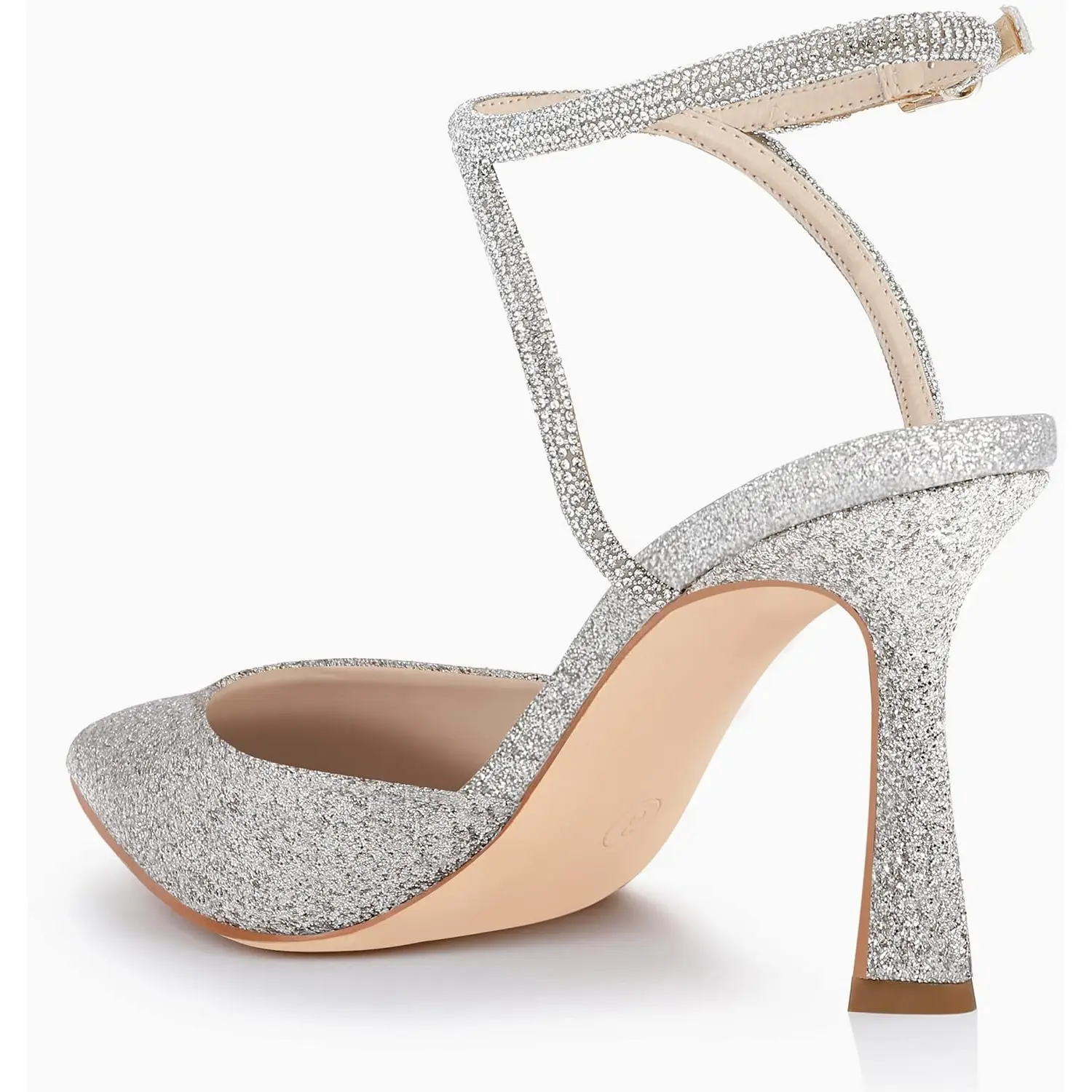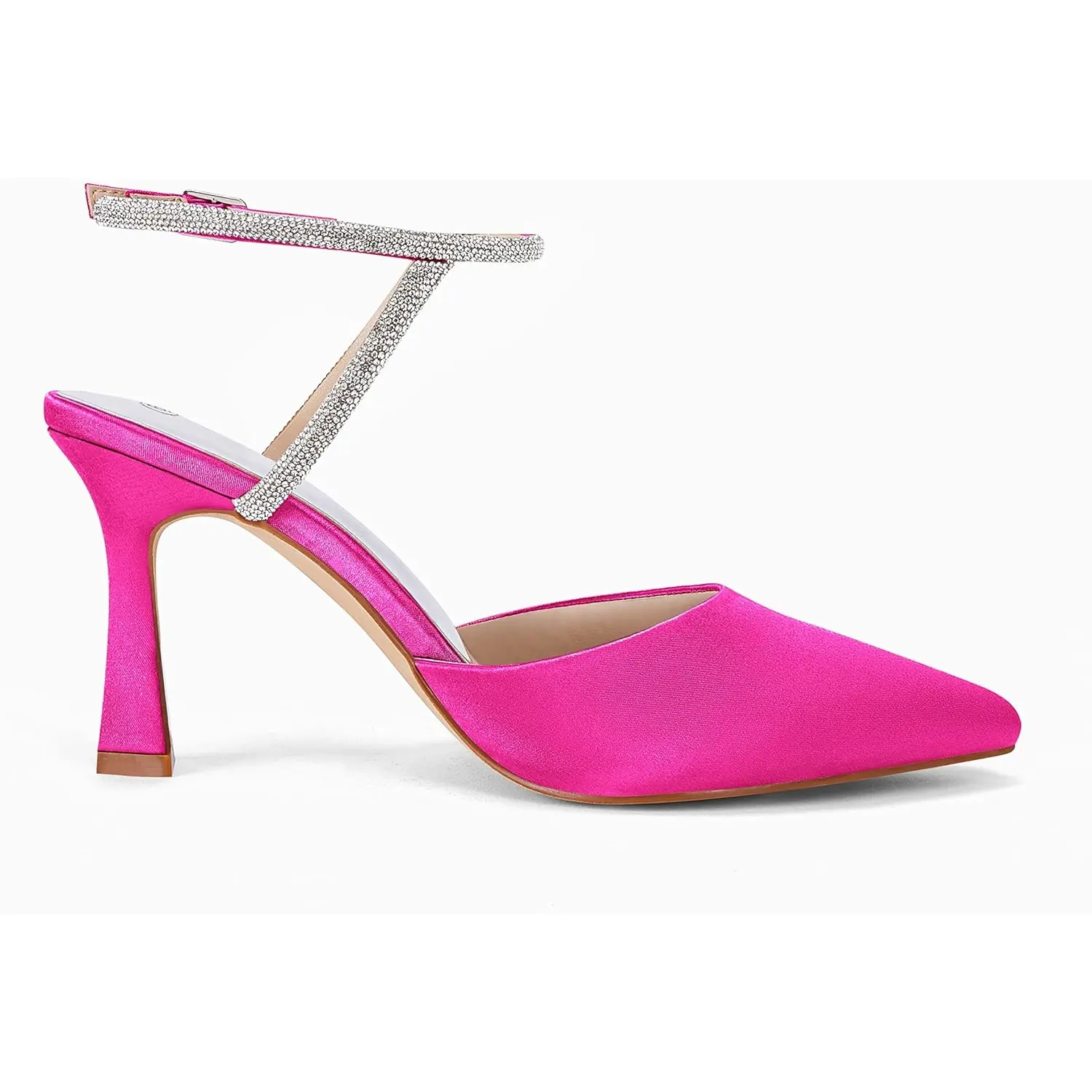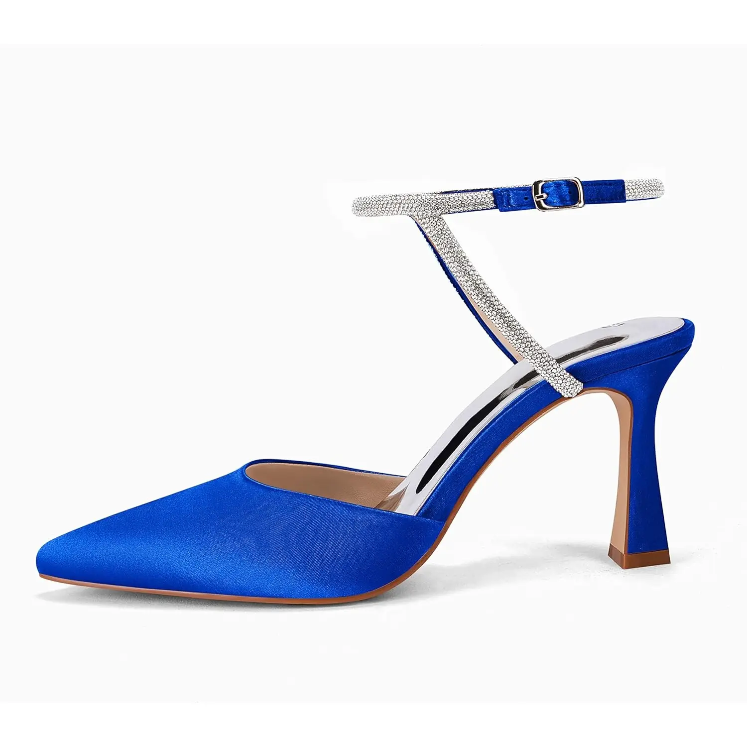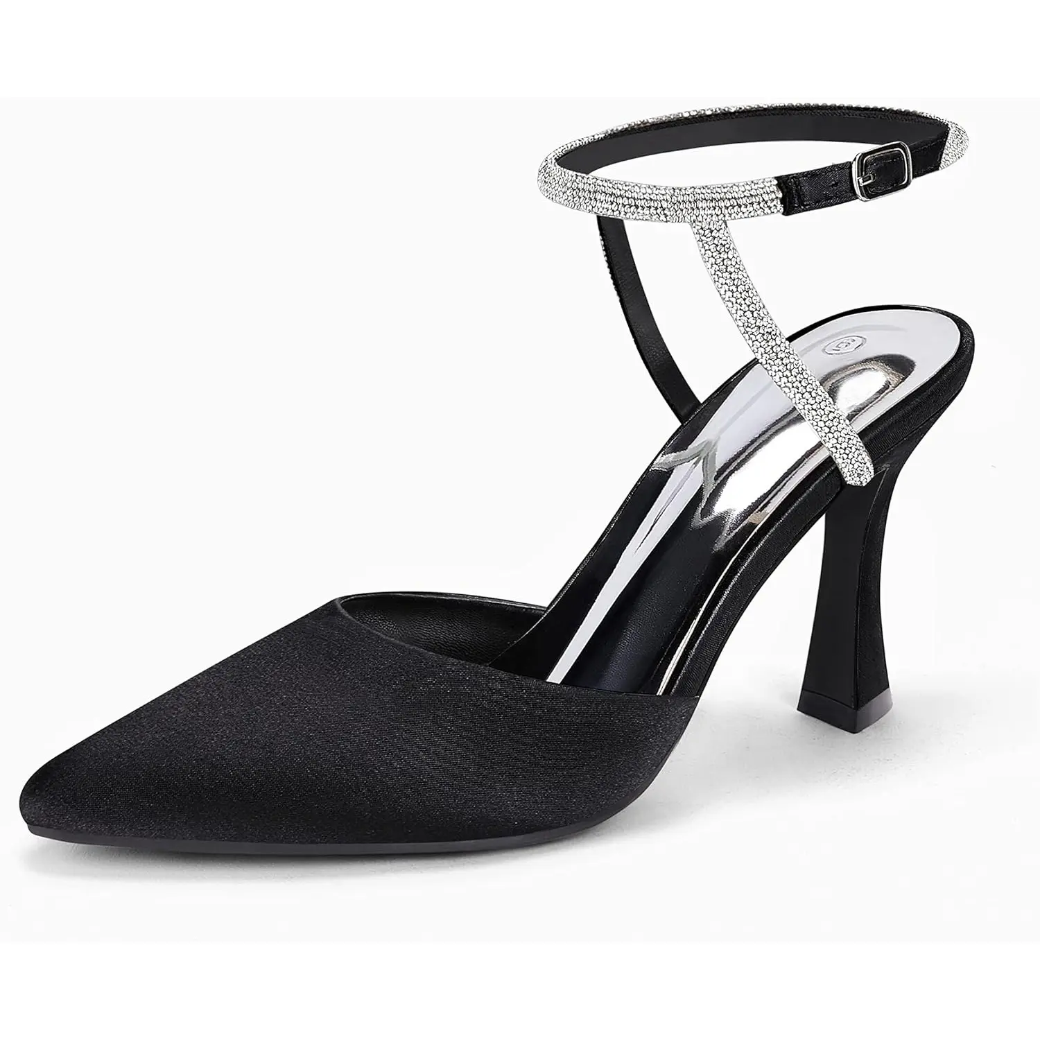 5. Coutgo Womens Rhinestone Heels Kitten High Satin Pumps Pointed Toe Sparkly Sexy Wedding Dress Shoes