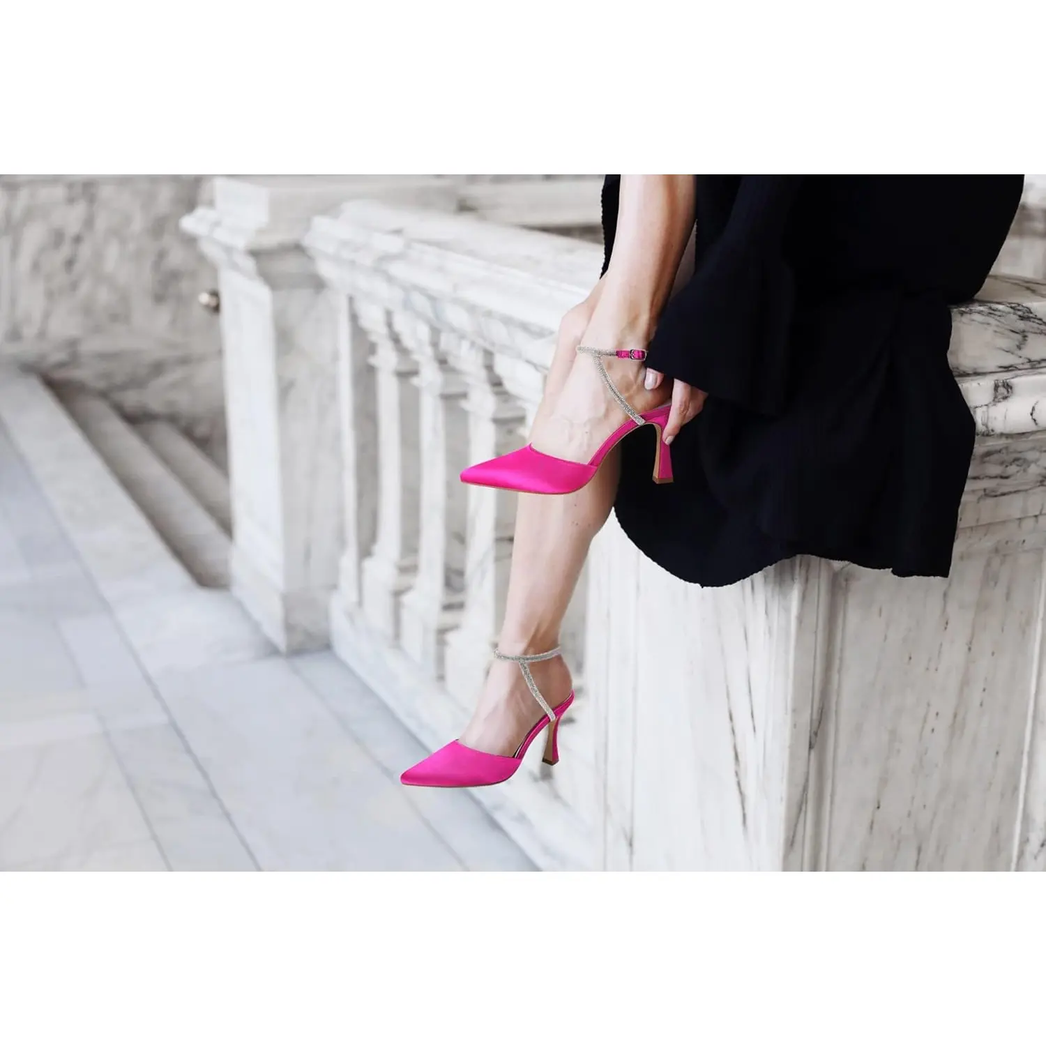 Coutgo Womens Rhinestone Heels Kitten High Satin Pumps Pointed Toe Sparkly Sexy Wedding Dress Shoes#womenshoes #kittenheels #fashionshoes #weddingshoes #yfp