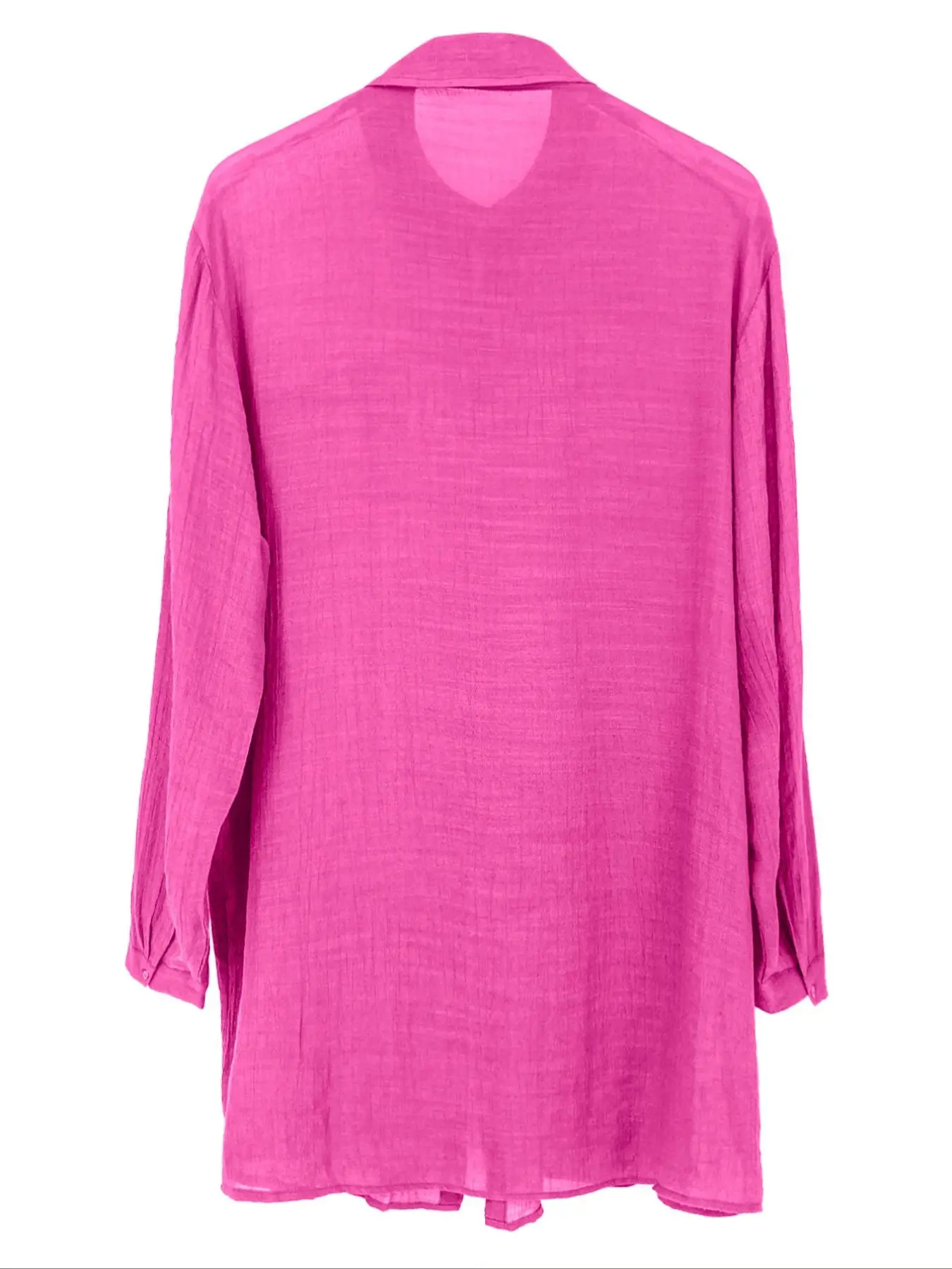 5. Plus Size Solid Button Front Cover Up Top, Casual Long Sleeve Pocket Outerwear for Beach Holiday Vacation, Women's Clothes for All Seasons