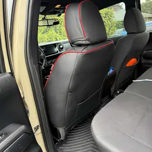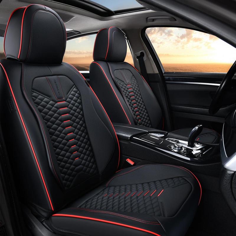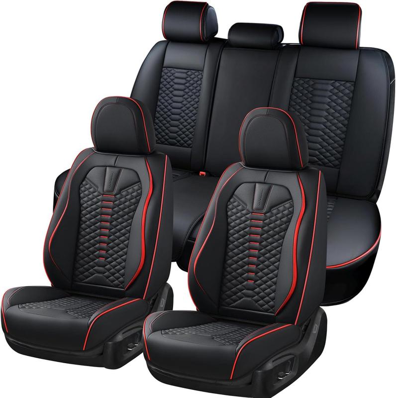 Elevate your car's interior with the Coverado D-8846 seat covers. Made from faux leather, these covers offer a luxurious touch. They fit most vehicles, ensuring a snug fit without hindering original functions. The set includes 2 front and 3 back seat covers, plus a manual. Choose from black, blue, red, or gray. These covers are not genuine leather.