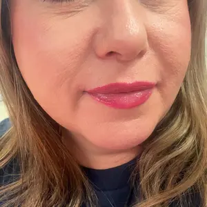 Use the pointed lipstain tip to outline and perfect your lip shape. Fill in the center of your lips and work outwards. Let lips dry for 60 seconds, then swipe on a layer of the non-stick lip gloss using the plush doe-foot applicator.