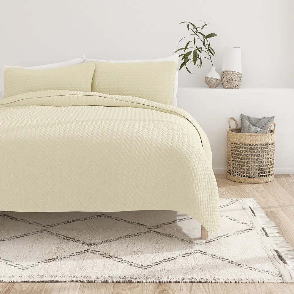 This herringbone coverlet is not only beautiful and comforting but the way this company does business should be a model for all on-line stores. They are helpful, clear with directions and the low prices are ridicuolous given the high quality. Wow.