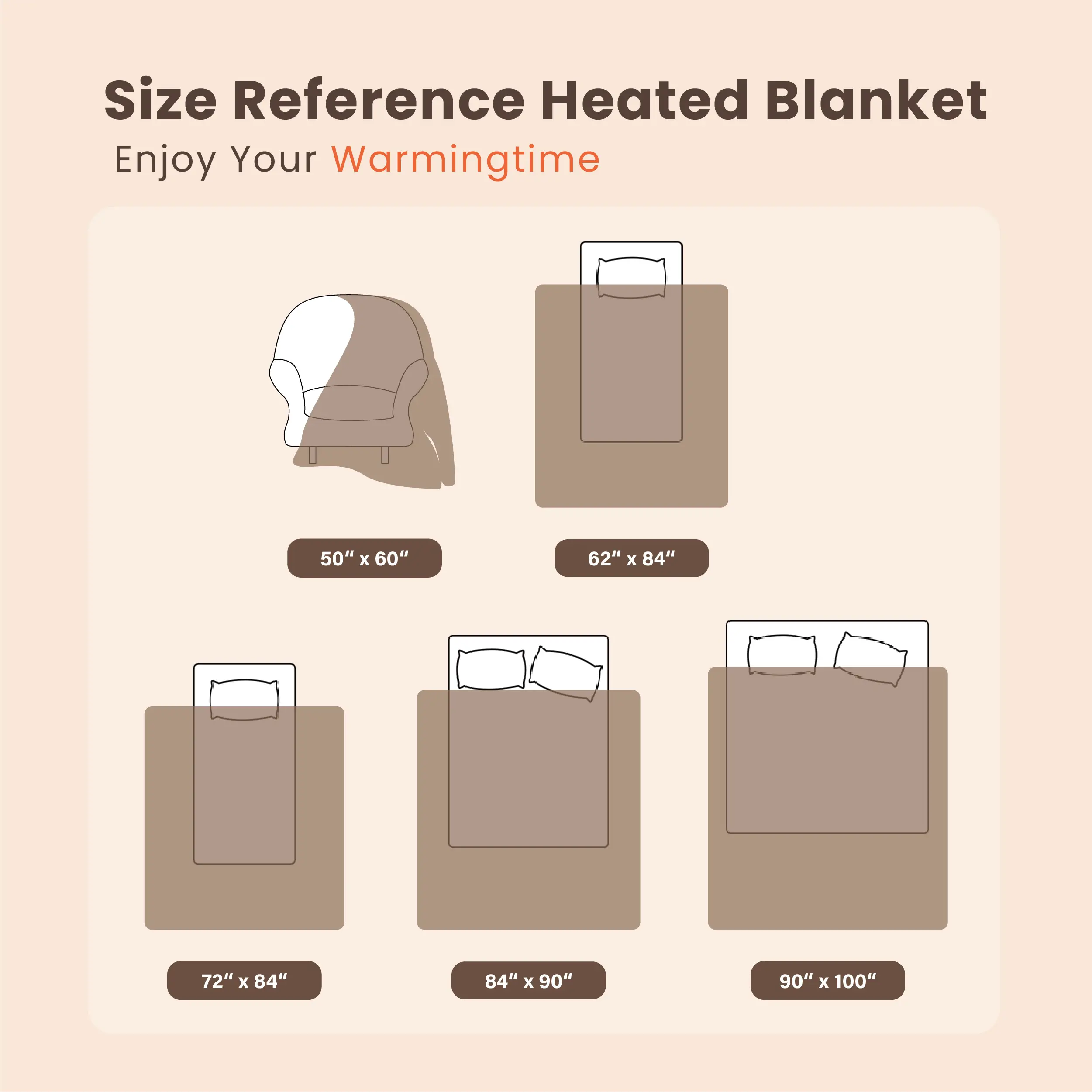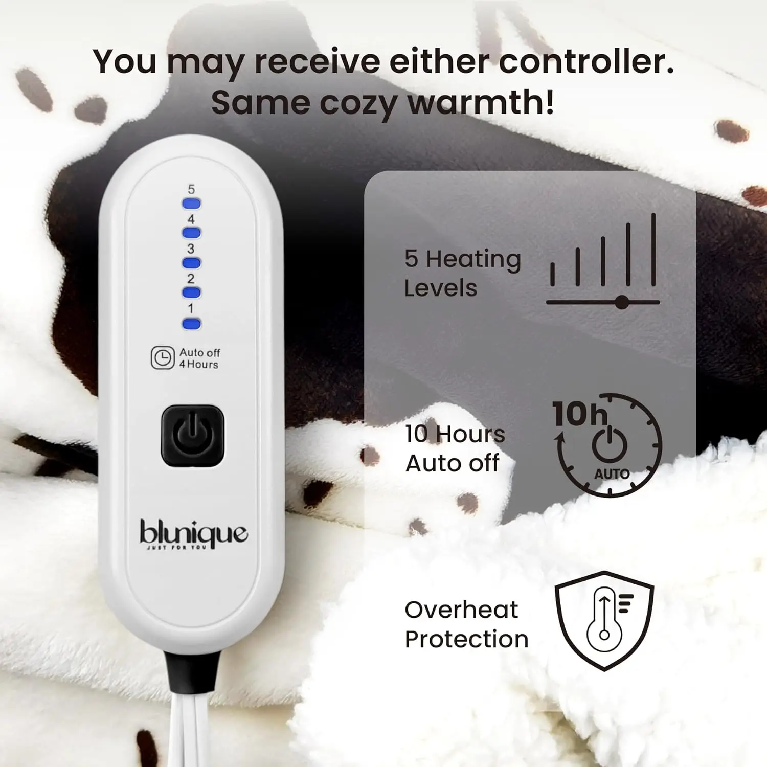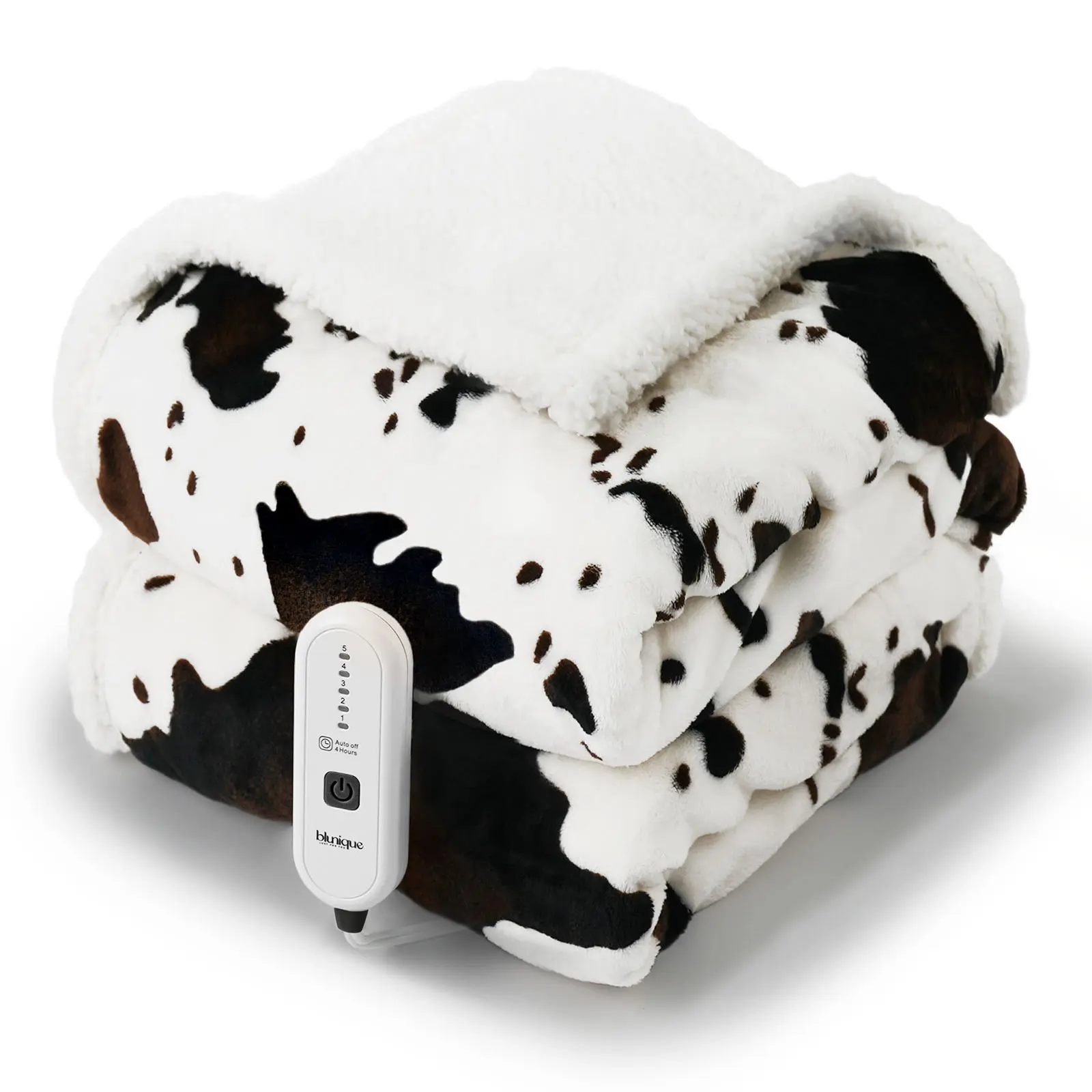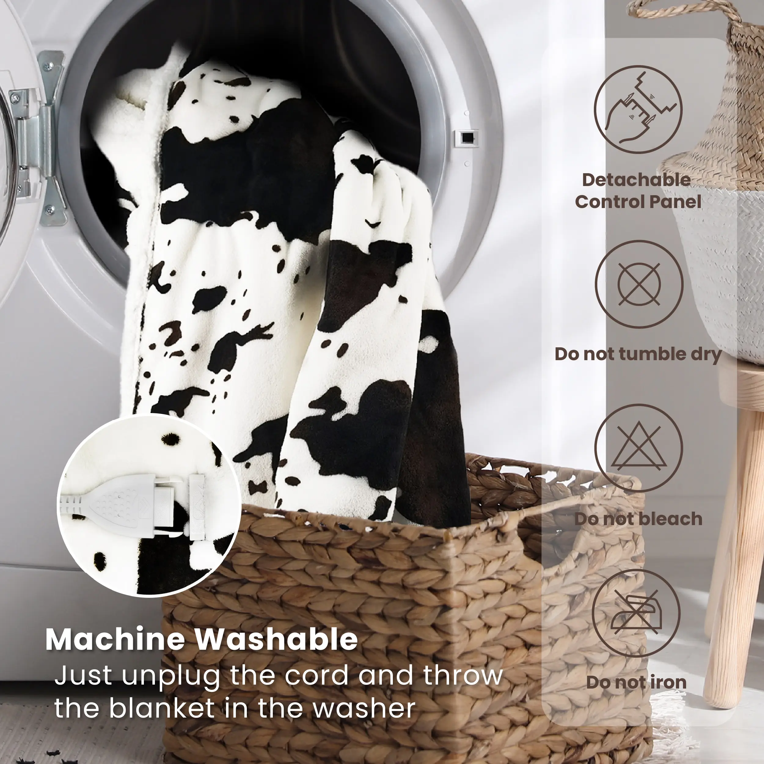 Conclusion:The Blunique Cow-Print Electric Heated Blanket offers a combination of warmth, comfort, and safety. With its 5 heat settings, quick heating, and automatic shutdown feature, it is perfect for keeping you cozy on chilly evenings. The detachable controller and machine washable design ensure easy care. Follow the care instructions for longevity and enjoy your Blunique Electric Heated Throw Blanket with peace of mind.