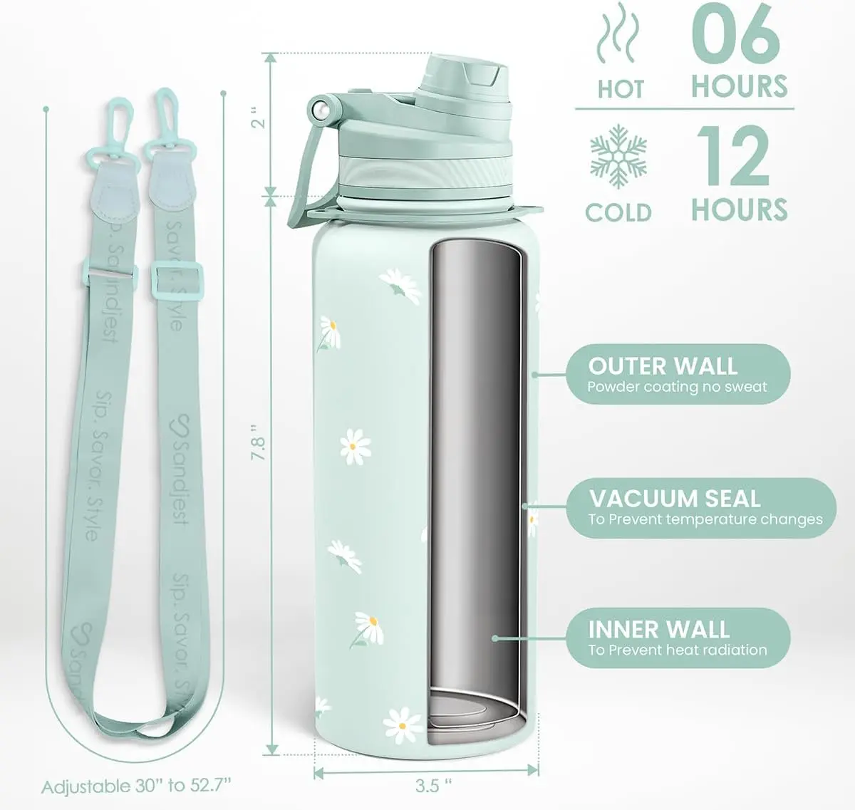 ·Sturdy Material: Made from high-quality stainless steel, this water bottle provides exceptional durability, while maintaining optimal temperature for your hot or cold beverages for hours.