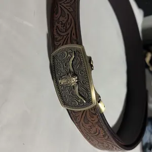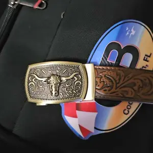 ·Rodeo-inspired Automatic Buckle: Ratchet belt has a western automatic buckle, with great special craftsmanship. Ratchet cowboy belt is easy to make a quick adjustment. Just slide ratchet belt into the buckle and pull the leather belt through, the belt buckle auto-locks. To release cowboy belt, push a little button on the side of the buckle.
