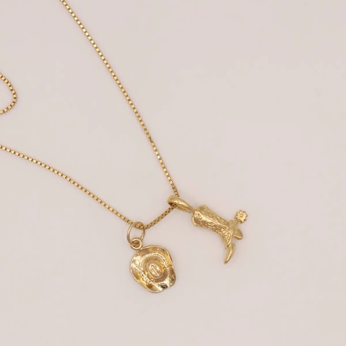 Gold Cowboy Boot and Hat Necklace for Women - Texas-Themed 14k Heavy Plated Gold JewelryGold Cowboy Boot and Hat Necklace for Women - Texas-Themed 14k Heavy Plated Gold Jewelry