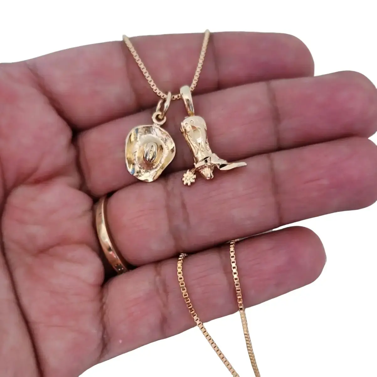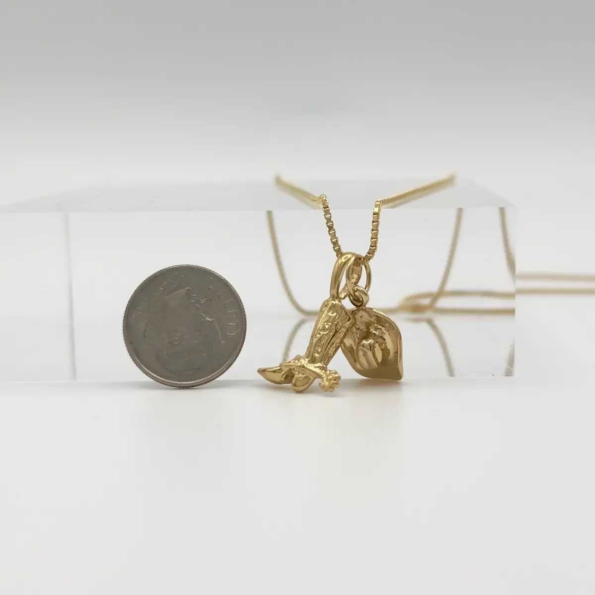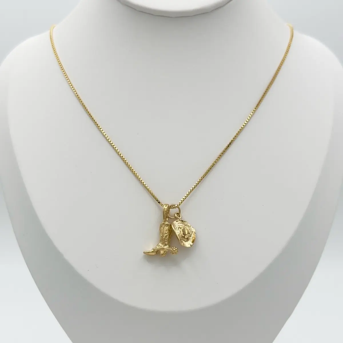 Gold Cowboy Boot and Hat Necklace for Women - Texas-Themed 14k Heavy Plated Gold Jewelry