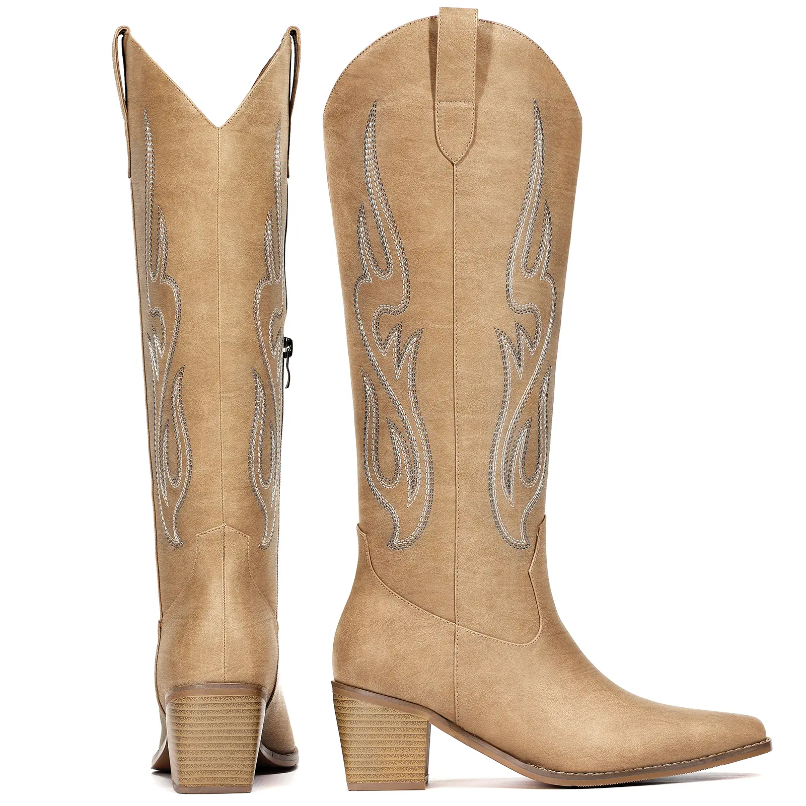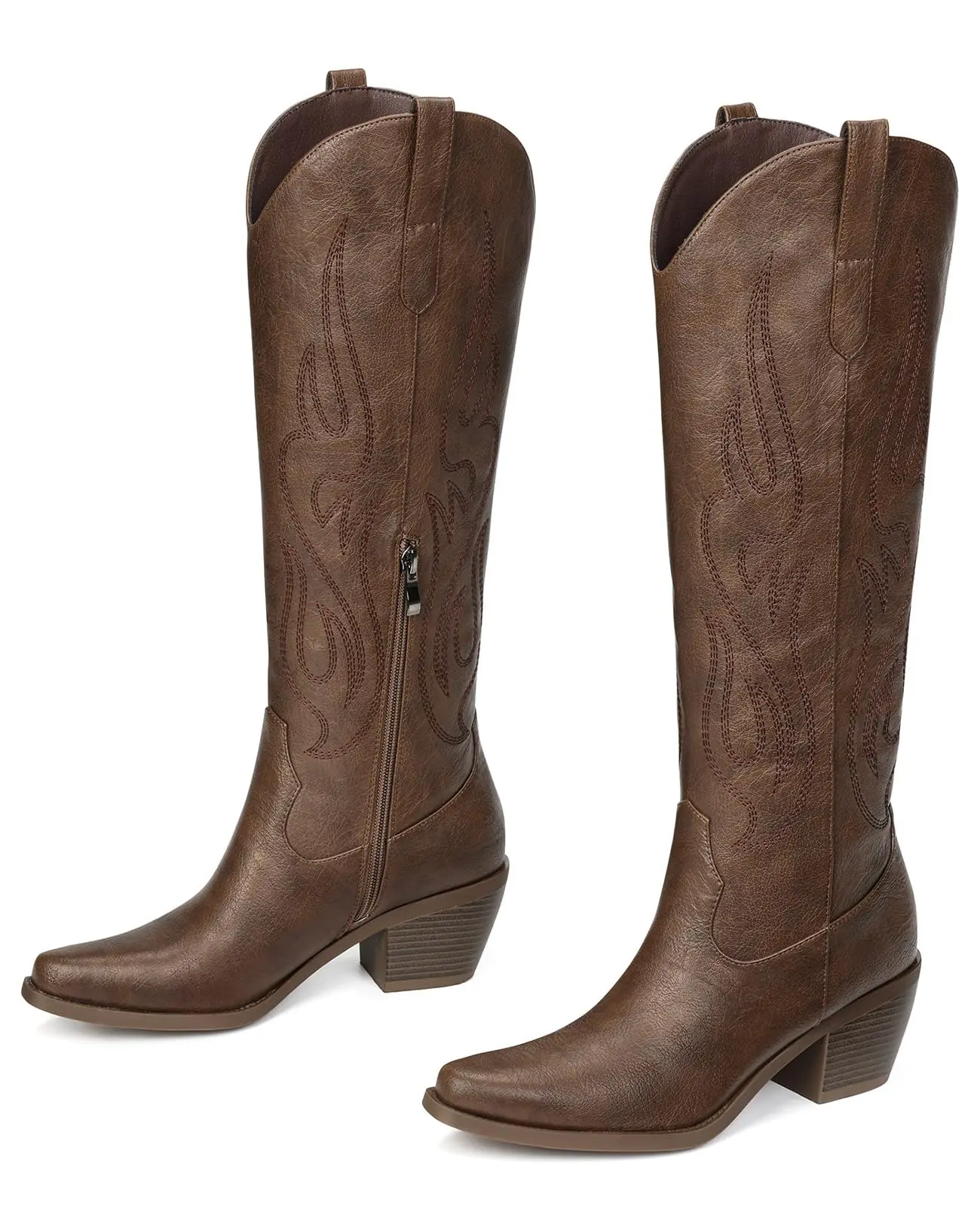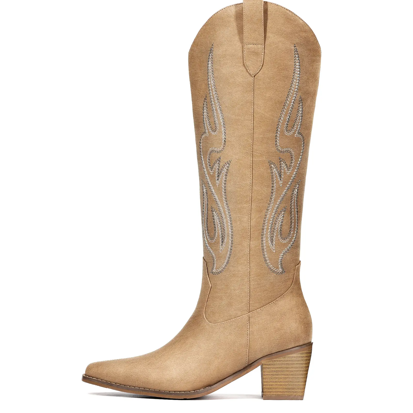 ·Classic Design: The mid calf cowboy boots for women are designed with classic embroidery, rubber sole and mesh fabric lining.