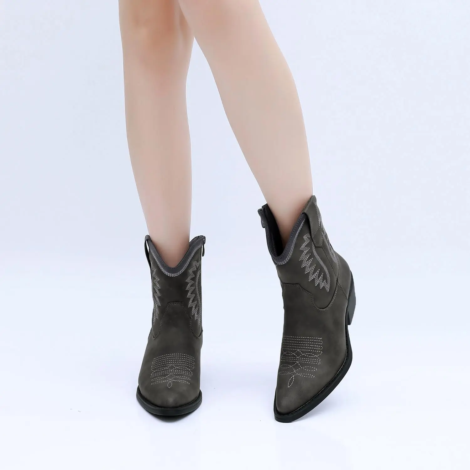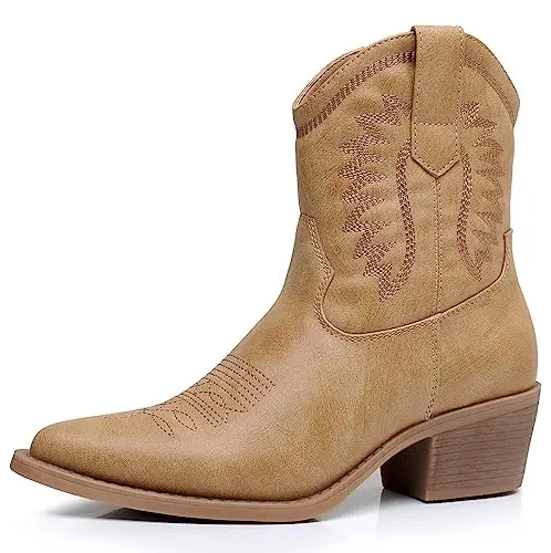 Step Into Style With Our Exquisite Mid-Calf Cowboy Boots, The Quintessential Accessory For Any Cowgirl Outfit. Crafted With Precision And Attention To Detail, These Ankle To Mid Calf Boots Elevate Your Western-Inspired Ensemble To New Heights, Making Them Perfect For Western Outfits For Women. Featuring Intricate Embroidery Stitching Along The Shaft, Each Pair Tells A Unique Story Of Craftsmanship And Heritage, Adding A Touch Of Flair To Your Country Concert Outfits. Fashion-Forward Yet Timeless, These Dress Boots Effortlessly Blend Rugged Charm With Contemporary Style, Ensuring You Stand Out From The Crowd At Every Occasion.