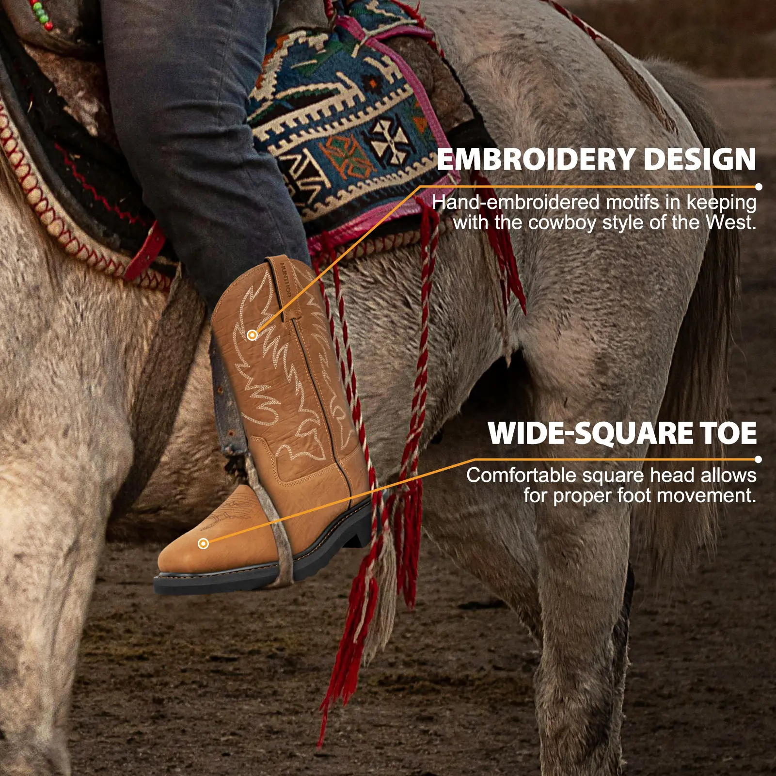 Embroidery Western Style: The neutral tones and wide-square toe design make cowboy boots versatile and comfortable, suitable for construction, warehouses, factories, ranches, barns and farms