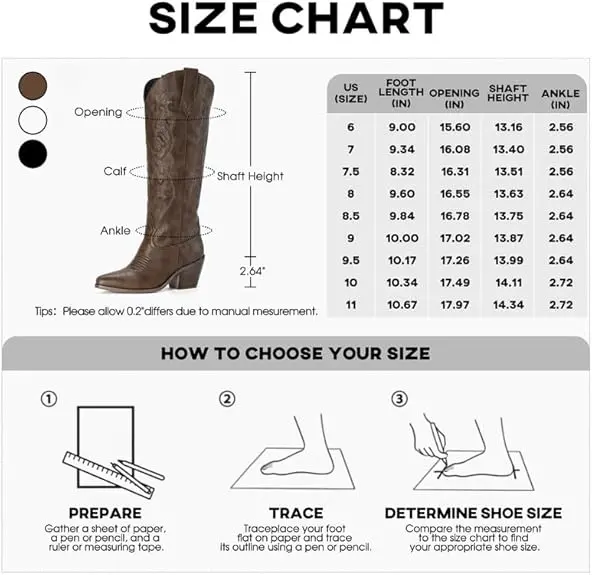 ·[Stylish Comfort in Every Step] Embrace stability, style, and a great fit with western cowboy boots. The sturdy chunky heel provides support for countryside adventures or urban outings, while the wide calf design ensures comfort for all body types. Walk confidently, bid farewell to discomfort.