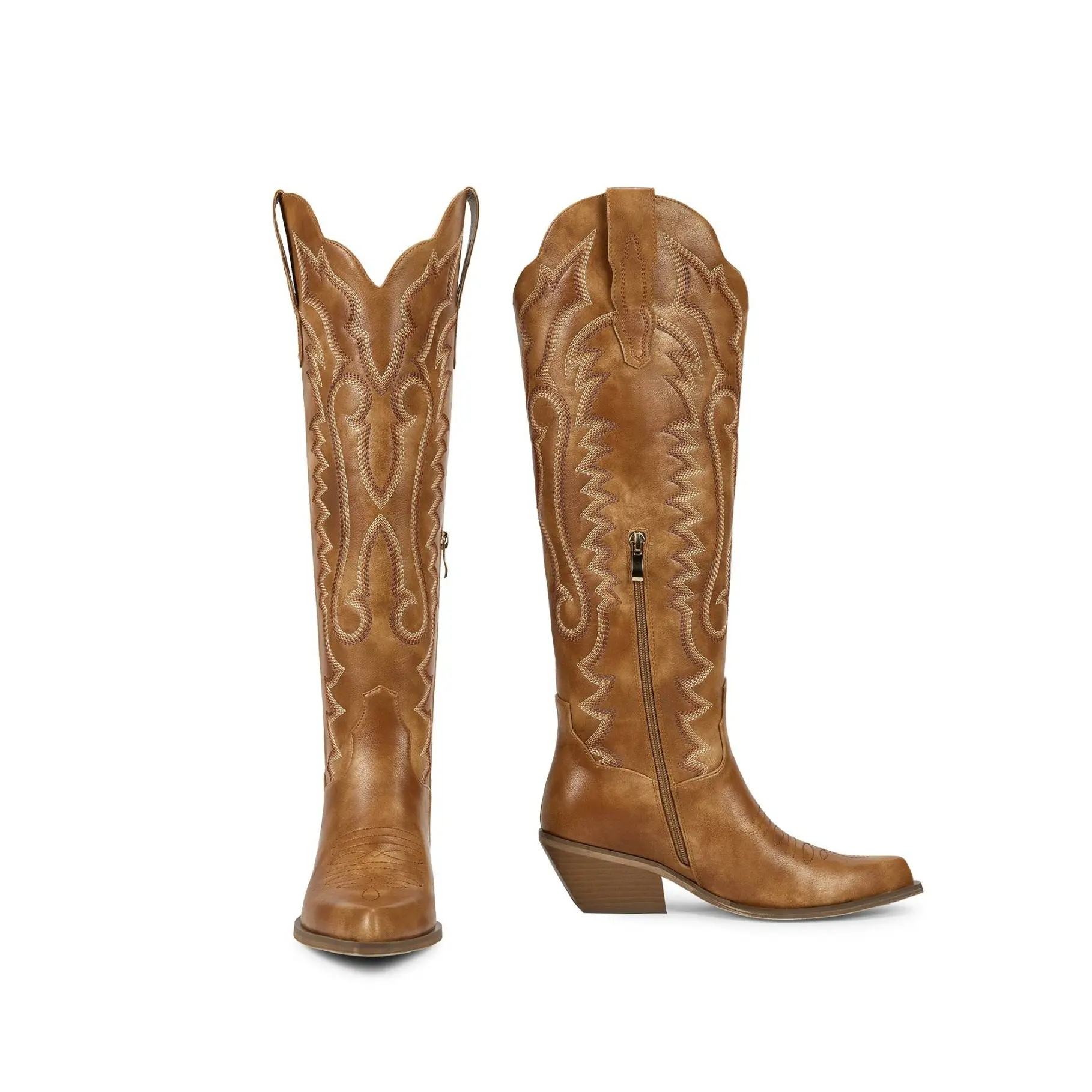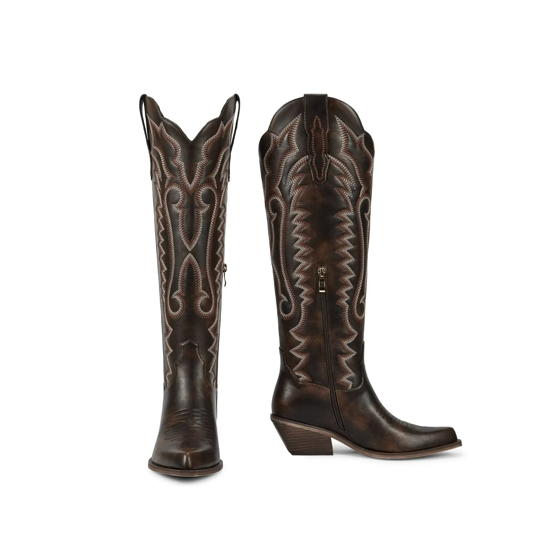 ·【Comfortable】: The soft synthetic lining can absorb moisture and sweat, and the low chunky heel of the women brown cowgirl boots provides a comfortable skin friendly feeling and cushioning, making the feet comfortable