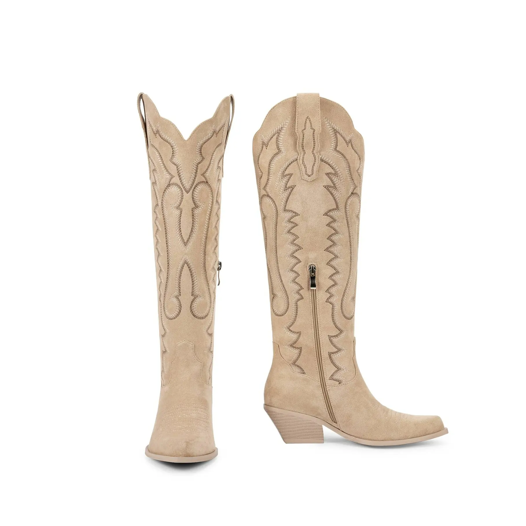 ·【Easy On And Off】: The half zipper and lifting ear design of women knee high cowboy boots help you easily put on and take off