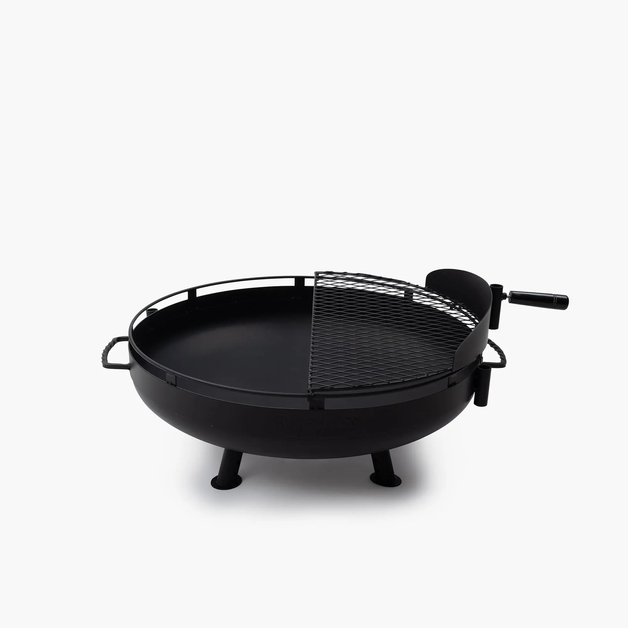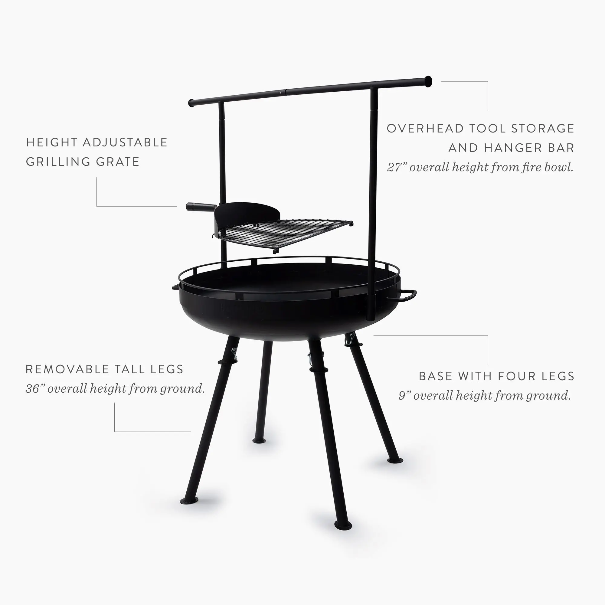 I've been eyeballing the cowboy grills for a couple of years. This year, I finally got one. We didn't have any firewood on hand so we used charcoal for our first cooking foray with this grill, and we think we need to use firewood. When only cooking for two people, the bowl is so deep that you have to use a LOT of charcoal to get the heat high-up enough to cook a steak. But, we've had a good time with it. The side table and overhead bar for hanging utensils are brilliant. I'm looking forward to making a cast-iron pot stew next. Excellent grill set-up. Nicely made.