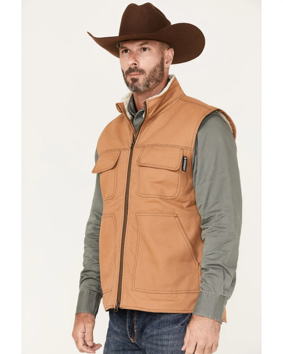 5. Men's Cowboy Hardware Ranch Canvas Berber Sherpa-Lined Vest - 185131-095