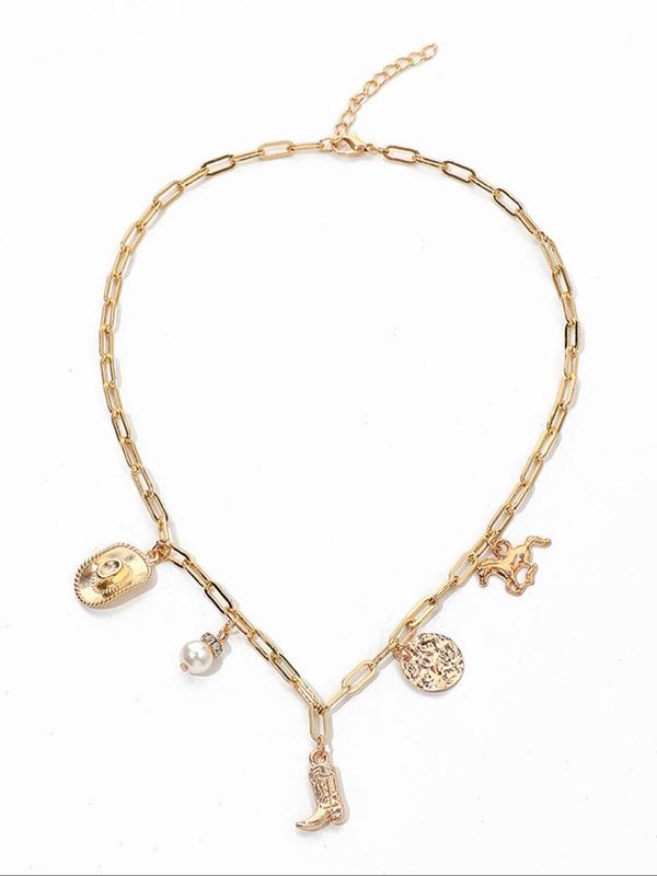 Western Cowboy Hat & Boots Design Pendant Necklace, Vintage Charm Necklace for Women for Gift, Fashion All-match Jewelry Accessories for Daily Wear, Charms Necklace