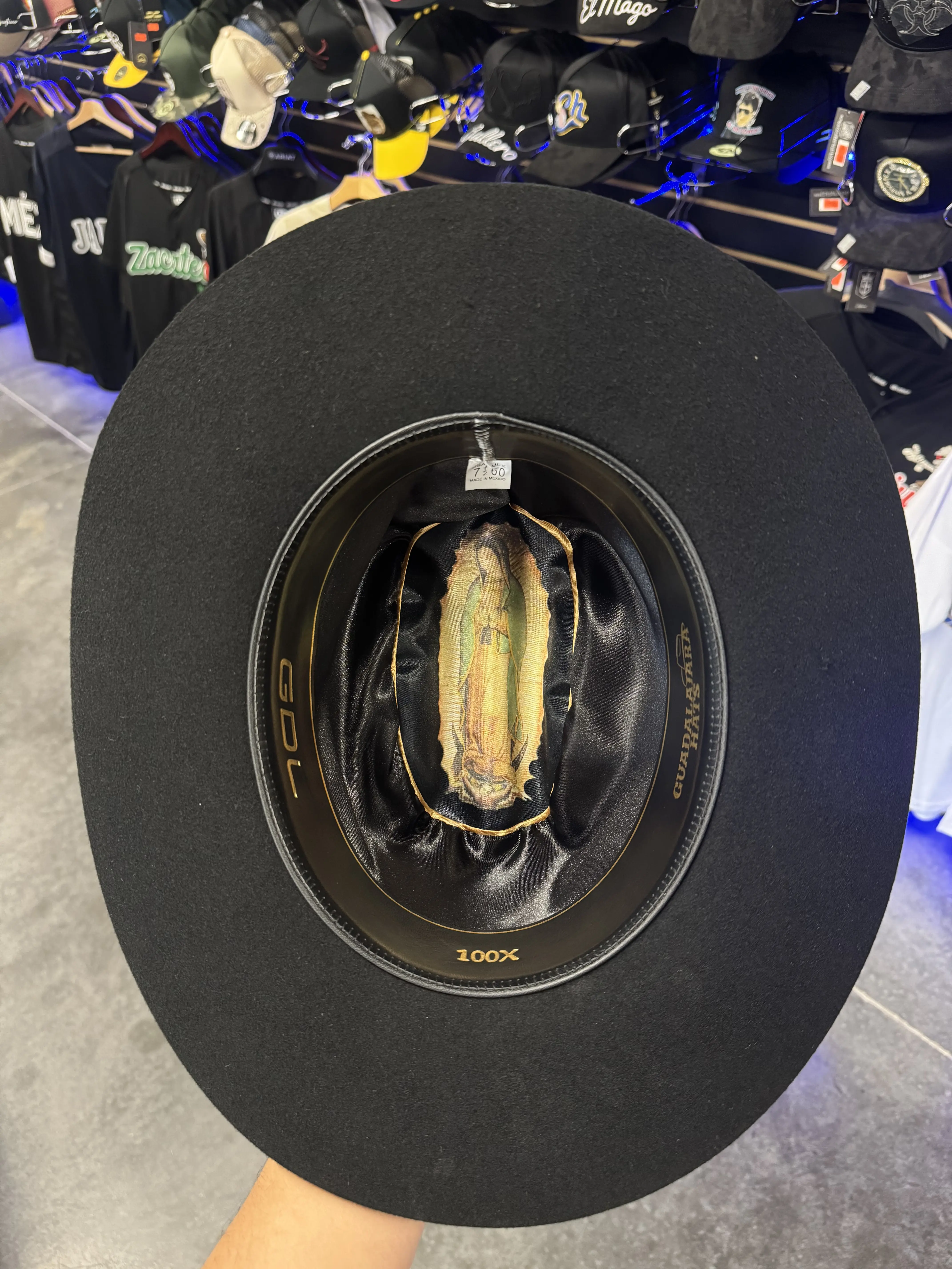 100x VIRGEN GUADALUPE Solo $185 🔥 Copa Baja Falda 3.5 🔥  #vaquero #westernwear #gdl #tejana