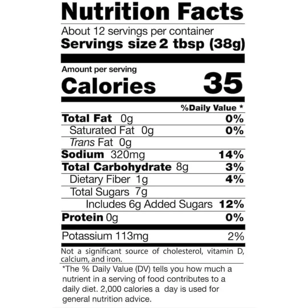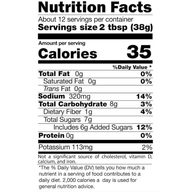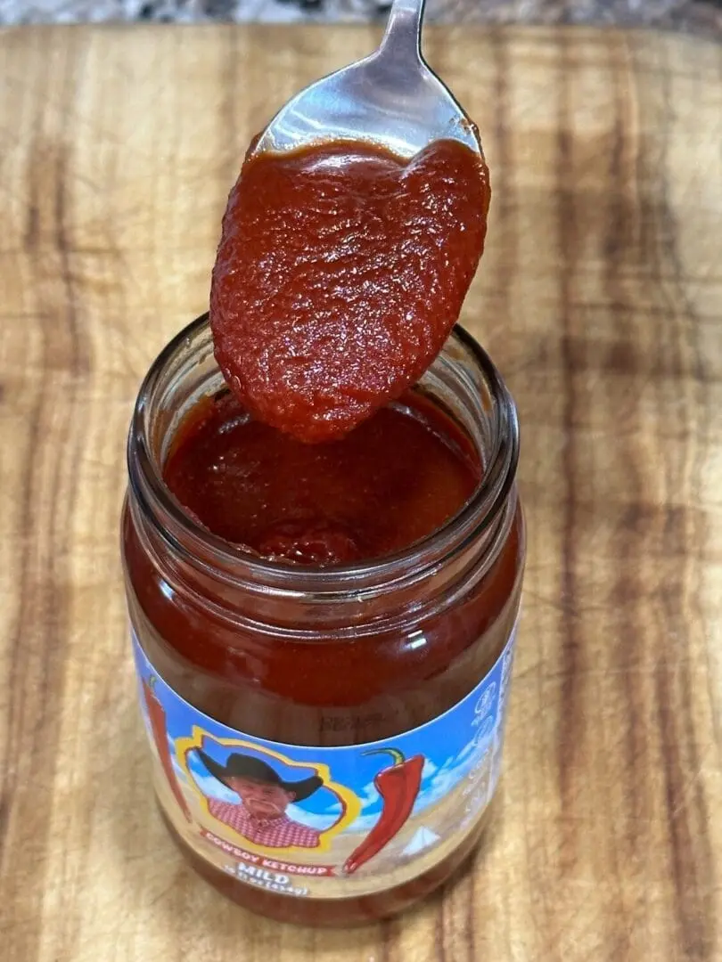 Ingredients: tomato paste (vine ripened tomatoes, citric acid), sun dried chile, water, honey, distilled vinegar, brown sugar, salt, granulated onion, granulated garlic.