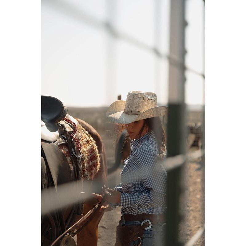 Built for girls that get the job done, this Cowboygirl Granddaddy Snap Shirt has all the features you need to rope that calf and look pretty in the saddle! With shirt tails long enough to stay tucked in, extra room in the bust & shoulder, a longer sleeve to swing a rope, and a pen hole in the pocket to keep count of cattle, this shirt is the perfect blend of functionality and beauty.
