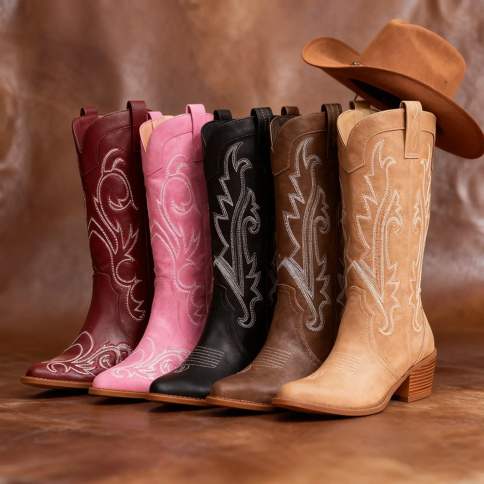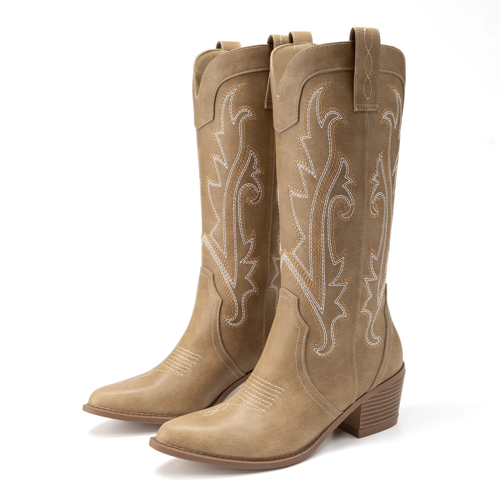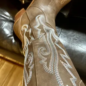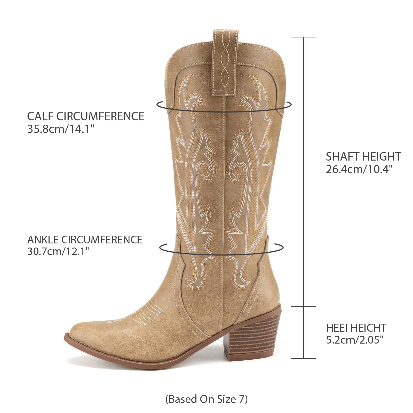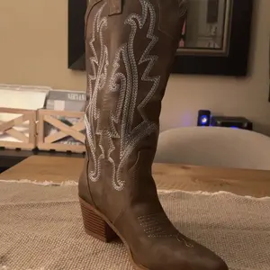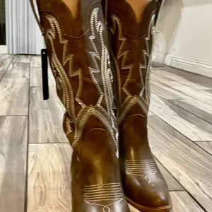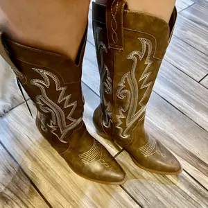 Cowgirl boots in tan color size 8.5 true to size and really good material. Good price and good boot if your looking for budget friendly alternative to the big buck boots. Shipping was fast too. Got it in less than a week