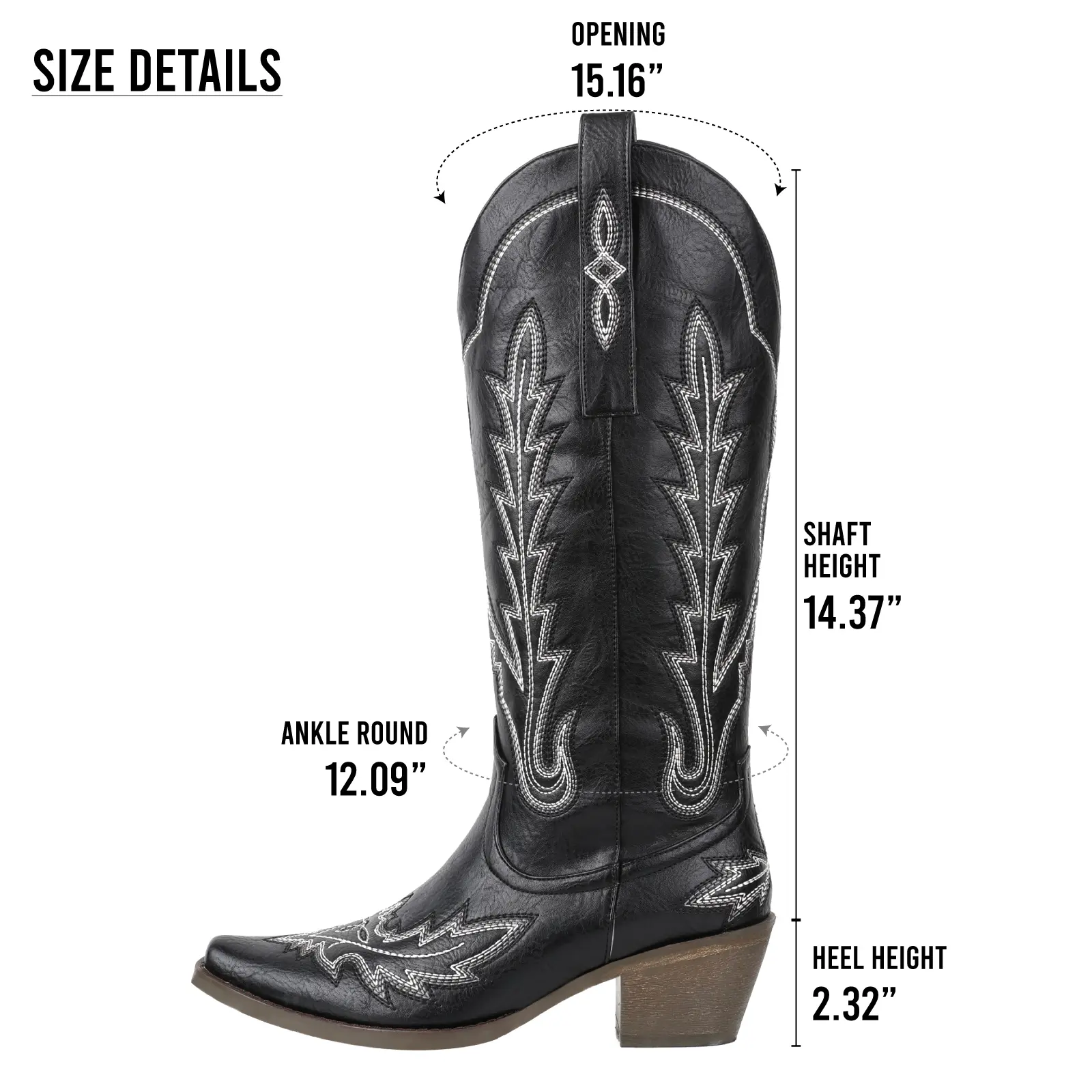 Pointed Toe: These boots feature a classic pointed toe design, offering a sharp and authentic western silhouette that balances modern style with traditional cowgirl flair.