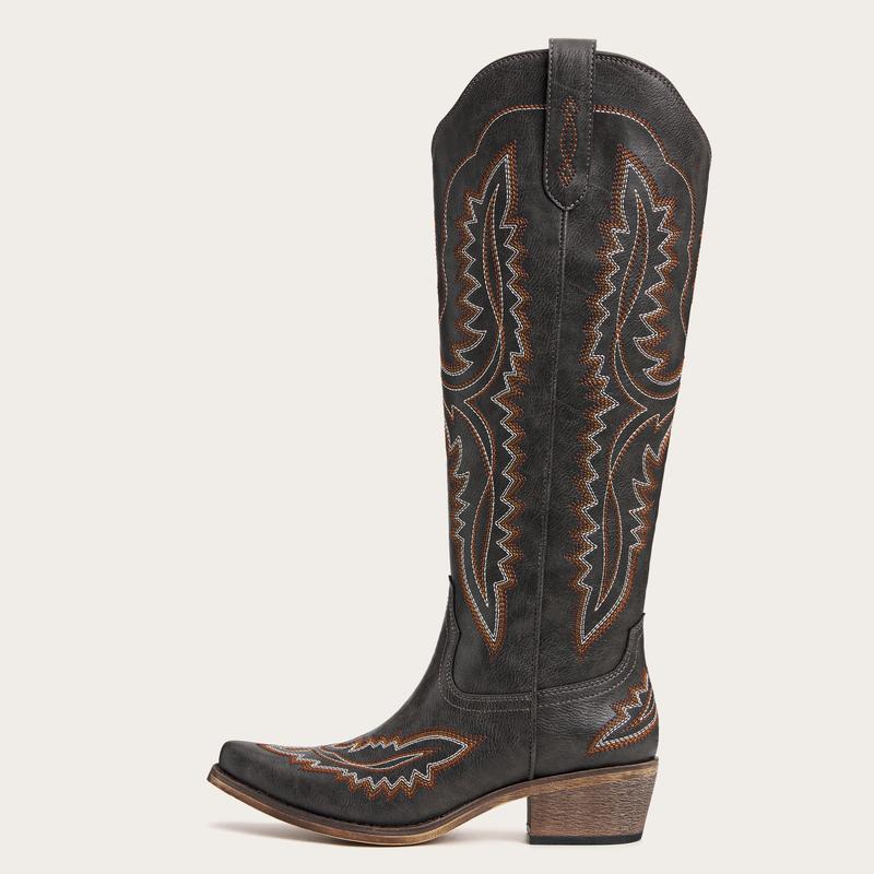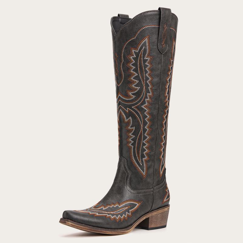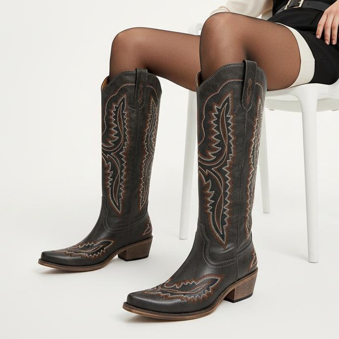These boots are perfect for everyday wear or special occasions. They provide a sleek silhouette with intricate stitching. The pointed toe and mid-height heel ensure comfort. Available in multiple sizes to suit all feet.