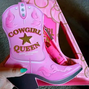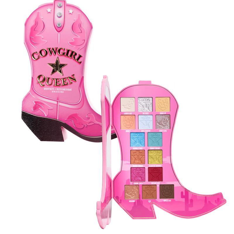 Live your Cowgirl Queen fantasy with this #ICONIC Pink Cowgirl Boot shaped palette. Features a mix of beautiful blues, burnt reds, and soft browns with matte, shimmer, metallic and reflective finishes.Β