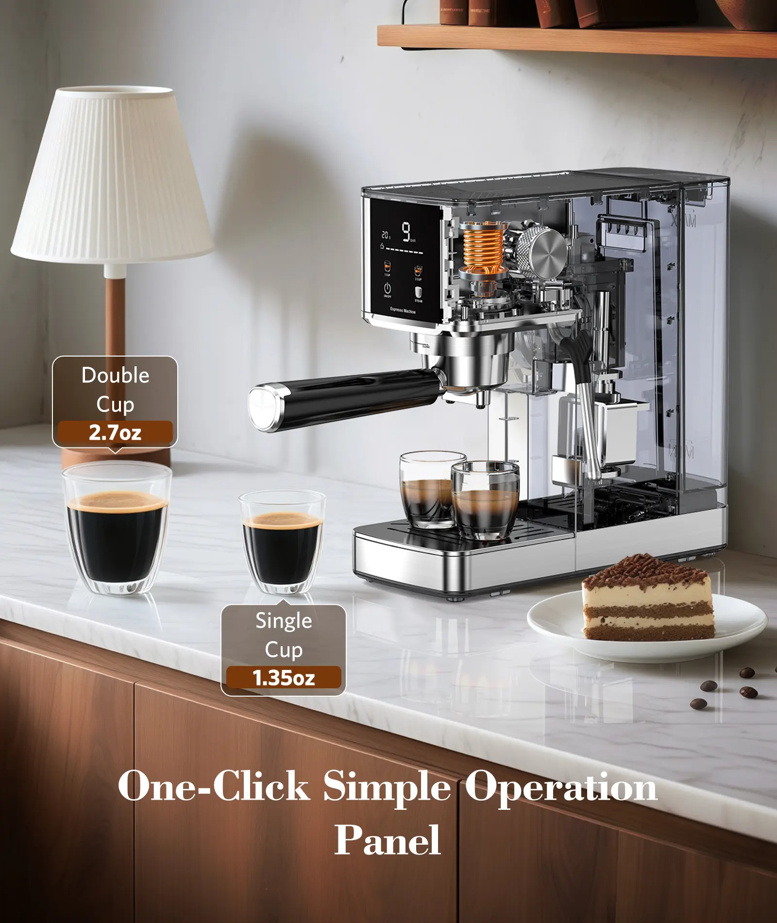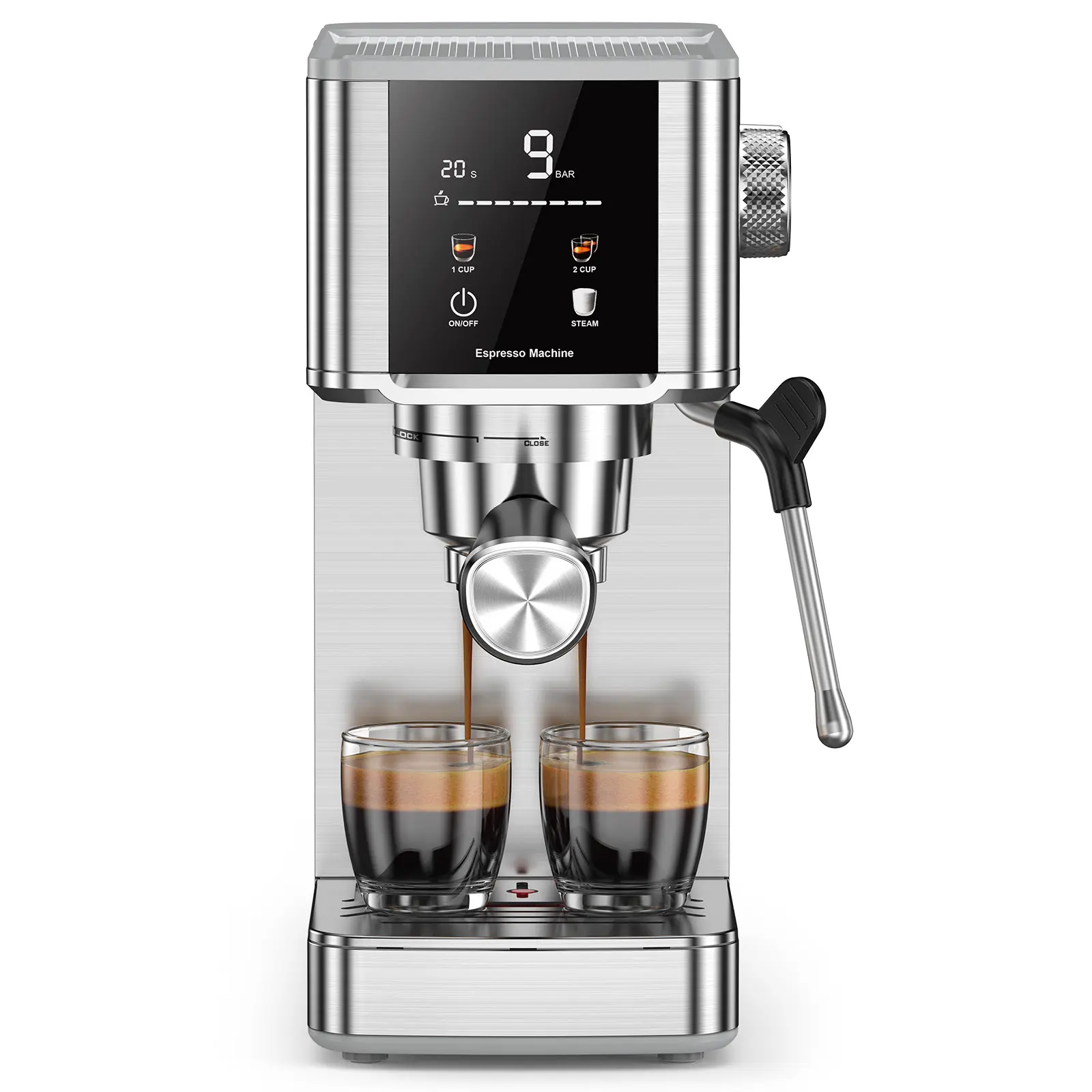 This coffee maker operates at 20 bars, ensuring a strong and flavorful brew. Perfect for those who love a robust coffee experience. The high pressure ensures every sip is packed with taste. Ideal for coffee enthusiasts.