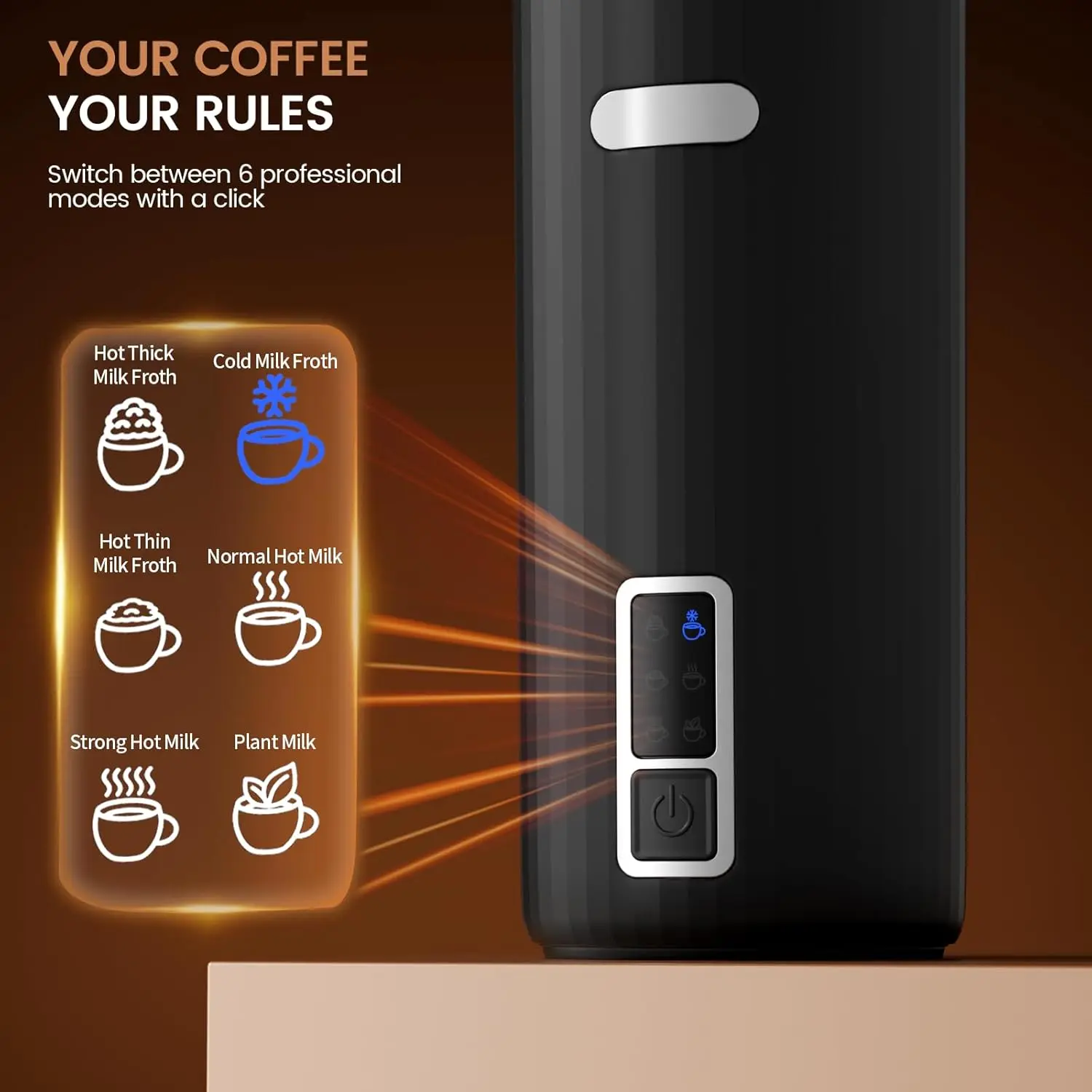 COWSAR 6-in-1 Milk Steamer and Frother, Hot & Cold Foam Milk Warmer  with Temperature Control, for Cold/Hot Foam & Heated Milk, Stainless Steel Inner, Perfect for Home and Office Use