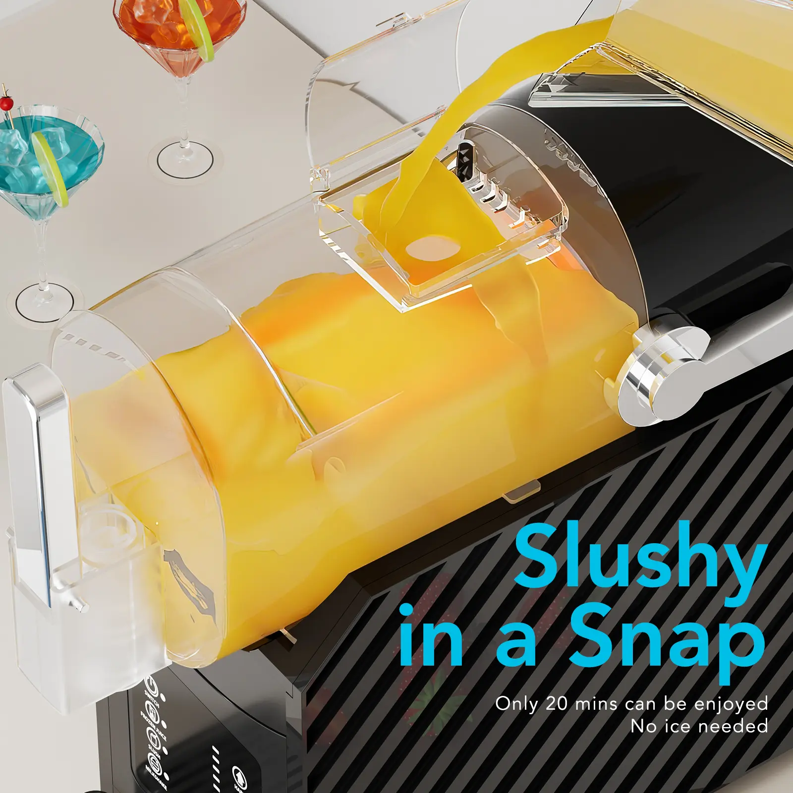 【No Ice Needed – Blend Directly with Ice Cubes or Frozen Fruit】 Unlike traditional machines requiring pre-frozen blocks, this no ice needed frozen drink maker works with regular ingredients to create perfectly textured slushies in approximately 40-50 minutes at full capacity. Designed for optimal performance with beverages containing over 4% sugar content, the machine ensures consistent crystallization for that ideal slushy consistency.This no-ice-needed design offers greater flexibility and eliminates the wait time for pre-freezing.