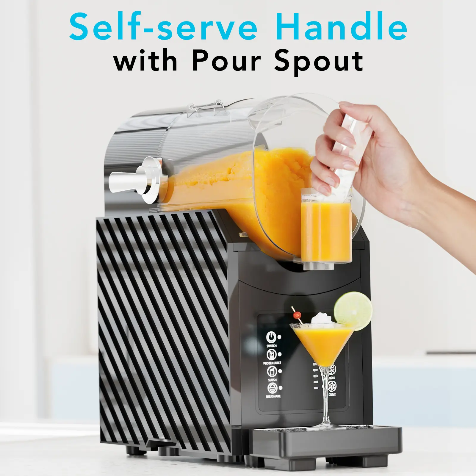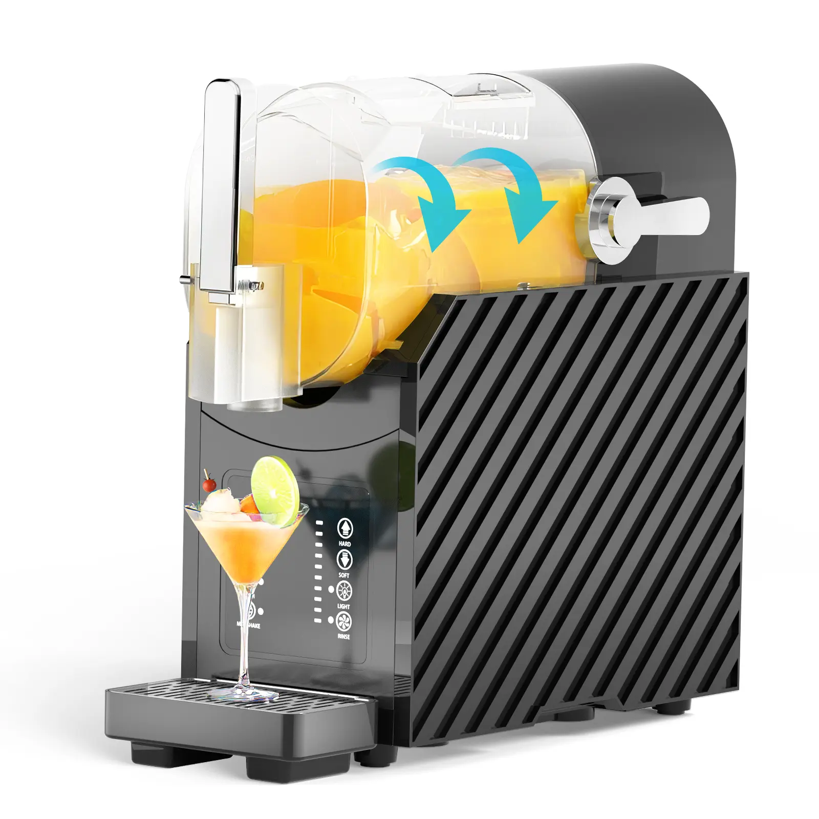 【Powerful Motor & Commercial-Grade Durability for Home Entertainment】 Equipped with a robust motor and stainless steel blades, this margarita machine crushes through ice and frozen ingredients with ease. Perfect for family gatherings, summer parties, or everyday enjoyment, it consistently delivers bar-quality frozen margaritas, daiquiris, and milkshakes. The sleek, compact design fits comfortably on your countertop while providing the performance you'd expect from professional equipment.