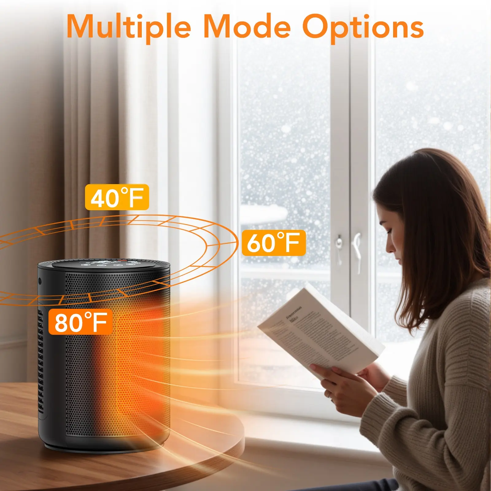 ·【2S Rapid Heating】 Get cozy in seconds with our fast-heating electric heater. Easily set your comfort zone (60°F–86°F) using the adjustable thermostat or handy remote control. Perfect as a compact desk heater for your office or study—instant warmth right where you need it.