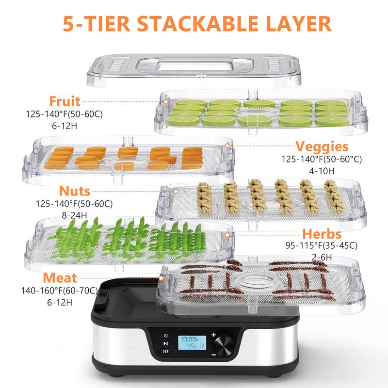 ·Stainless Steel Dehydrator: Ideal for drying fruits, herbs, food, and meat. 🌿