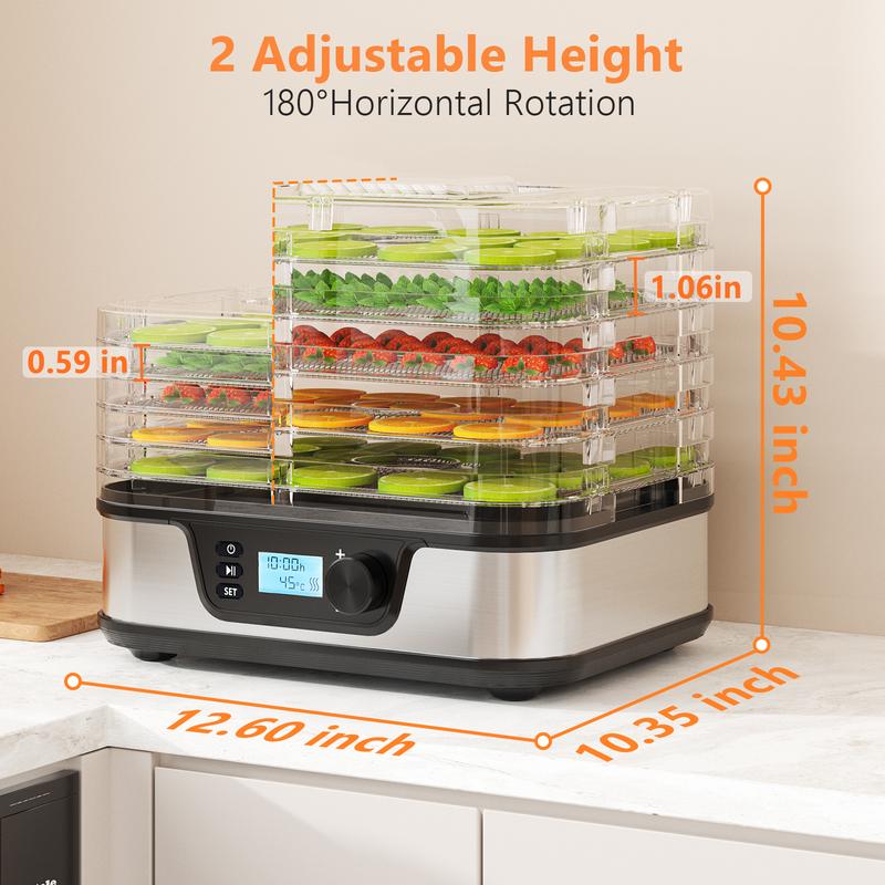 This dryer is perfect for preserving fruits, vegetables, herbs, and meats. The stainless steel construction ensures durability. The 5 compartments and convection technology make it a versatile choice for various drying needs. The 24 hours timer and LCD screen add convenience for extended drying sessions. 🍎
