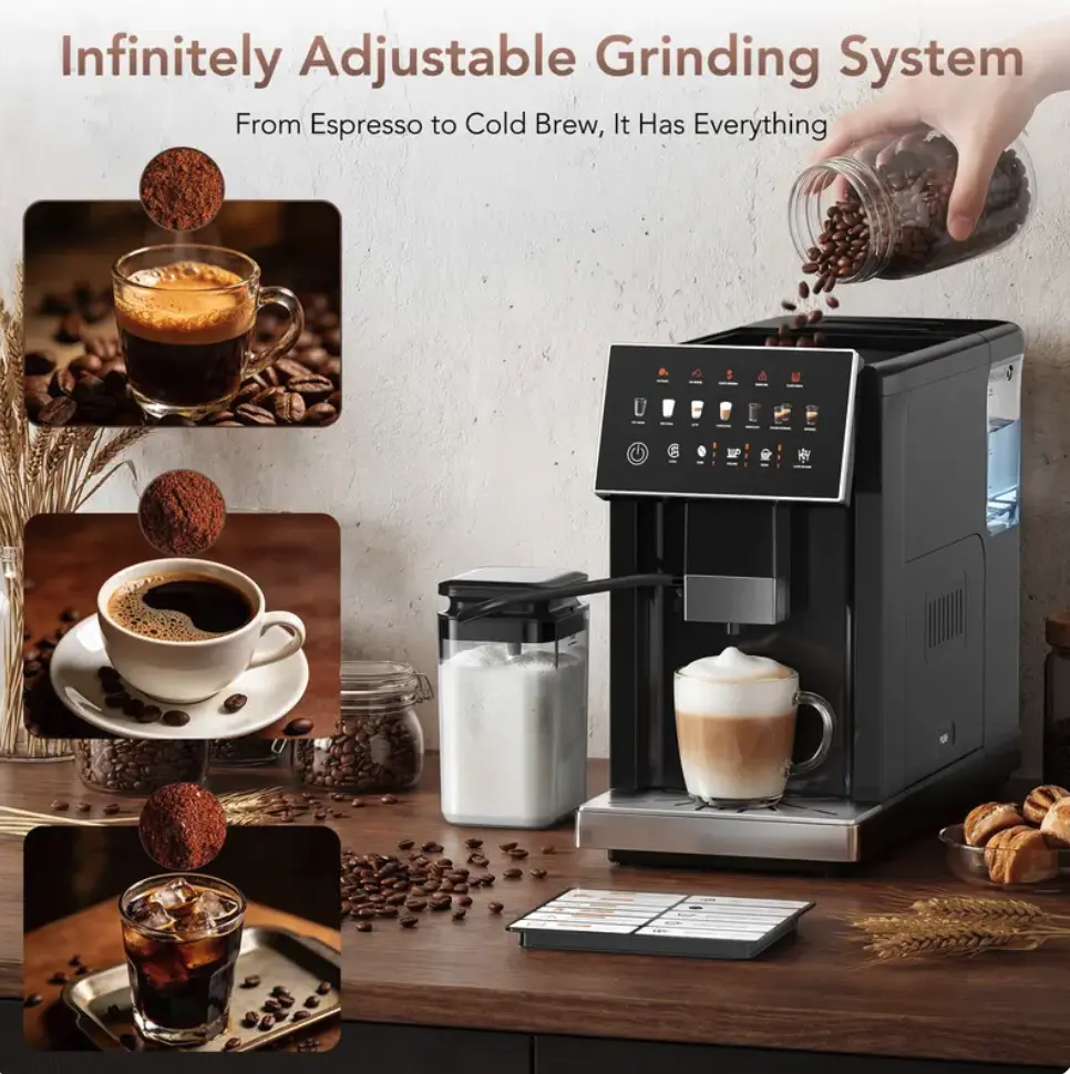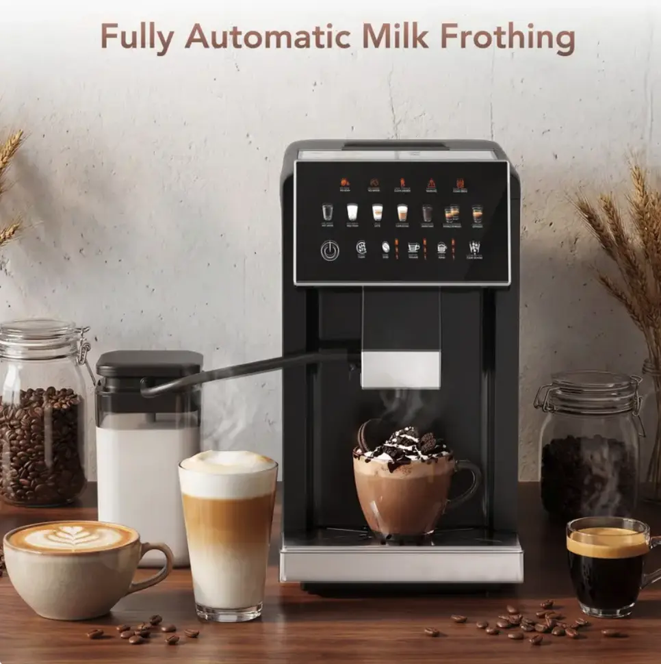 Brew café-quality coffee at home with one touch. The COWSAR Fully Automatic Espresso Machine combines precision grinding, smart brewing, and effortless milk frothing in one sleek, compact design.