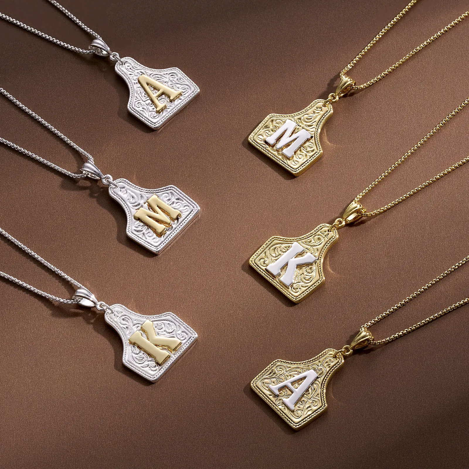 Inspired by Western medallions and rodeo culture, this necklace boasts a bold, statement-making design. Each piece is individually carved with capital initials (A-Z), featuring a striking two-toned gold and silver texture. It's more than just jewelry; it's a symbol of pride and identity. Perfect for men and women, it adds a unique Western vibe to any outfit.