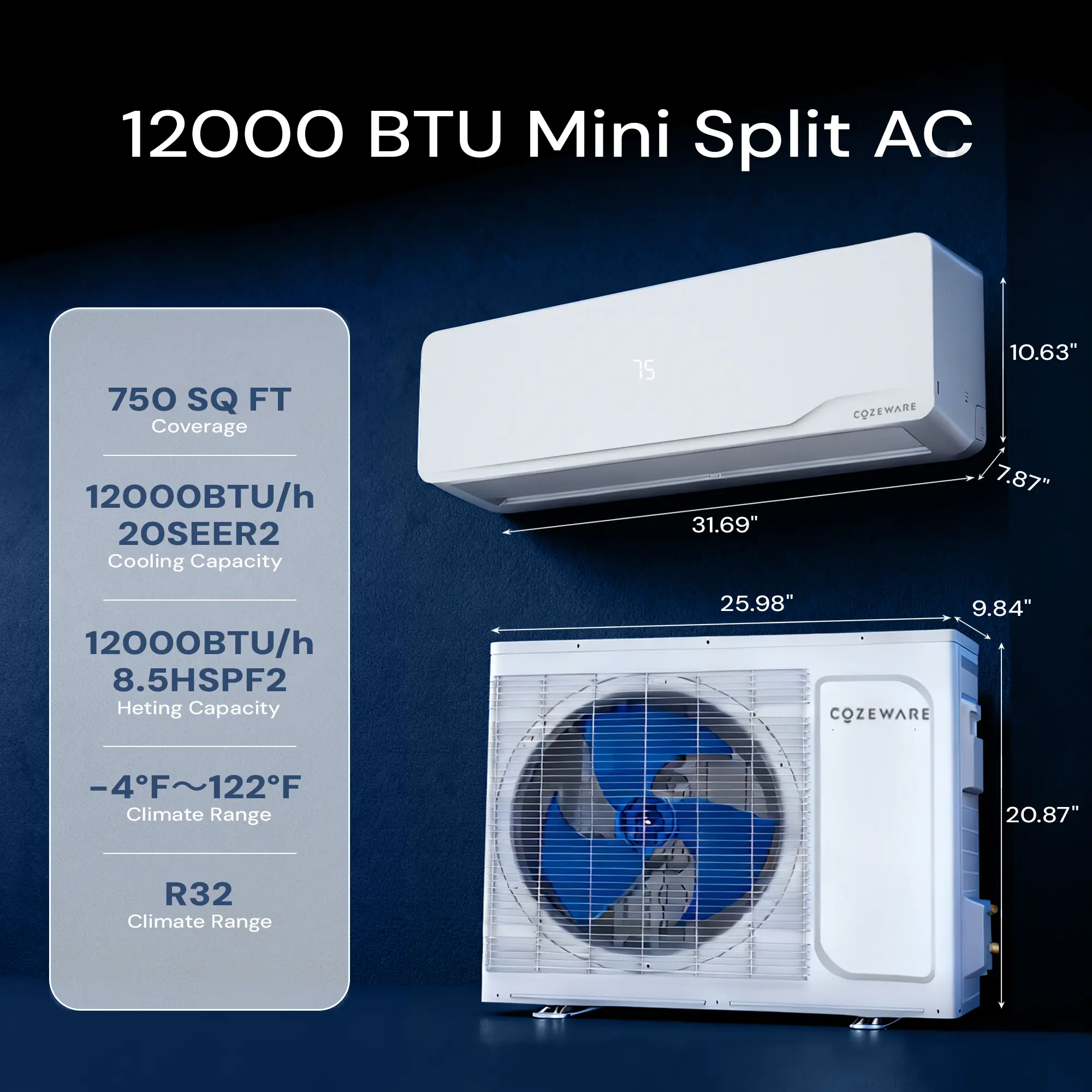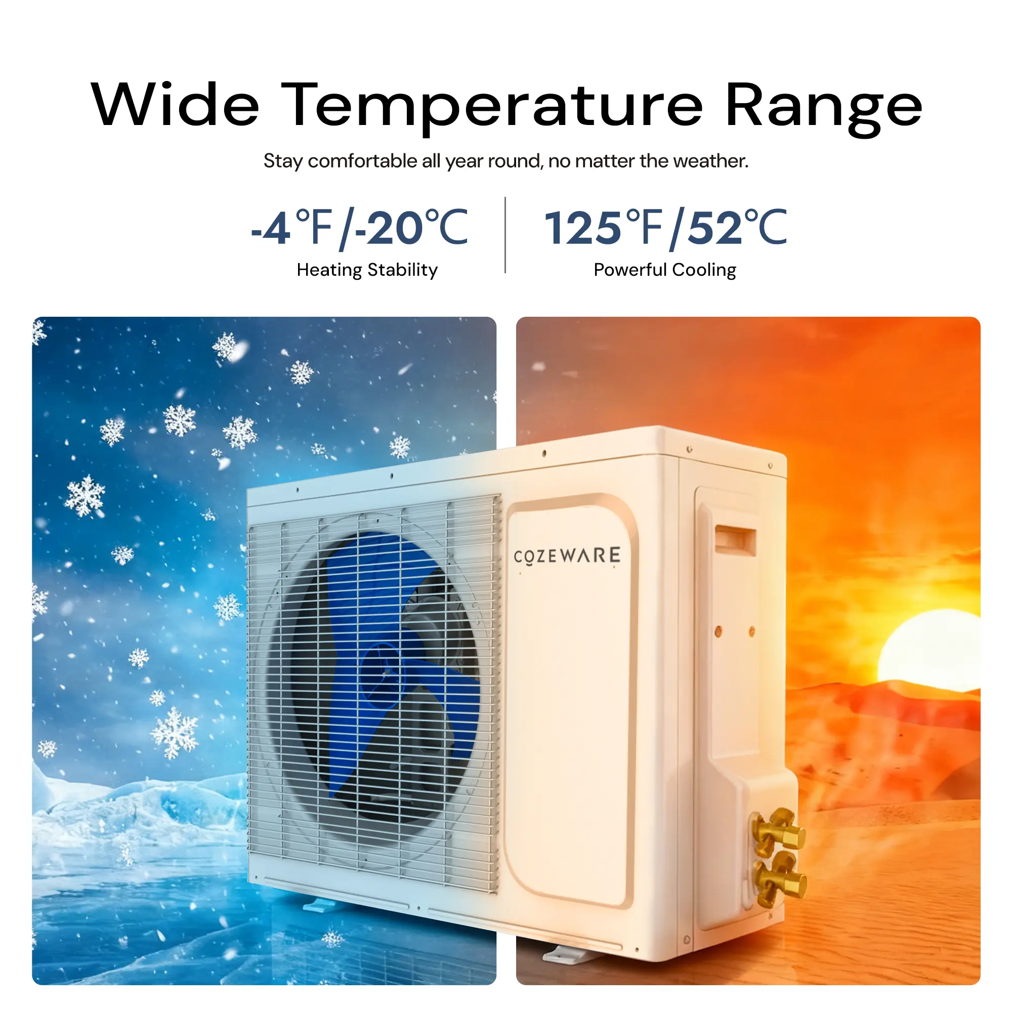 Cool in summer, warm in winter! This 12,000 BTU mini split keeps rooms up to 750 sq. ft. perfectly comfy all year round — even from -4°F to 125°F.